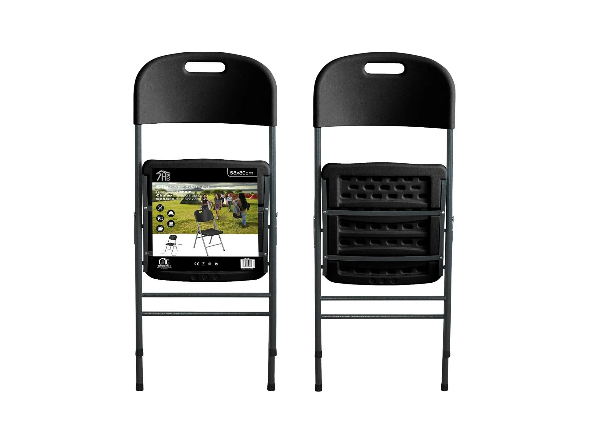 Pack 4 Sedie Pieghevoli con Maniglia 47x58x87 cm Nero 7house
