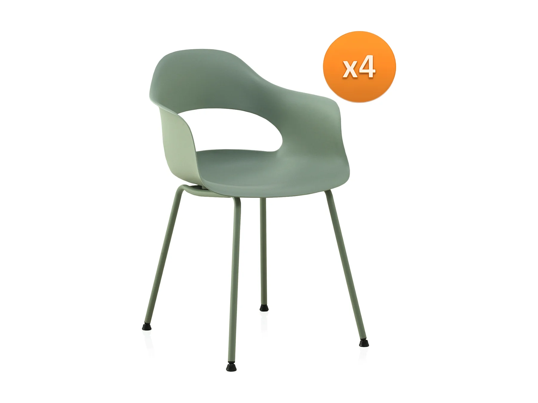 Set 4 sedie pp color pistacchio con gambe in metallo