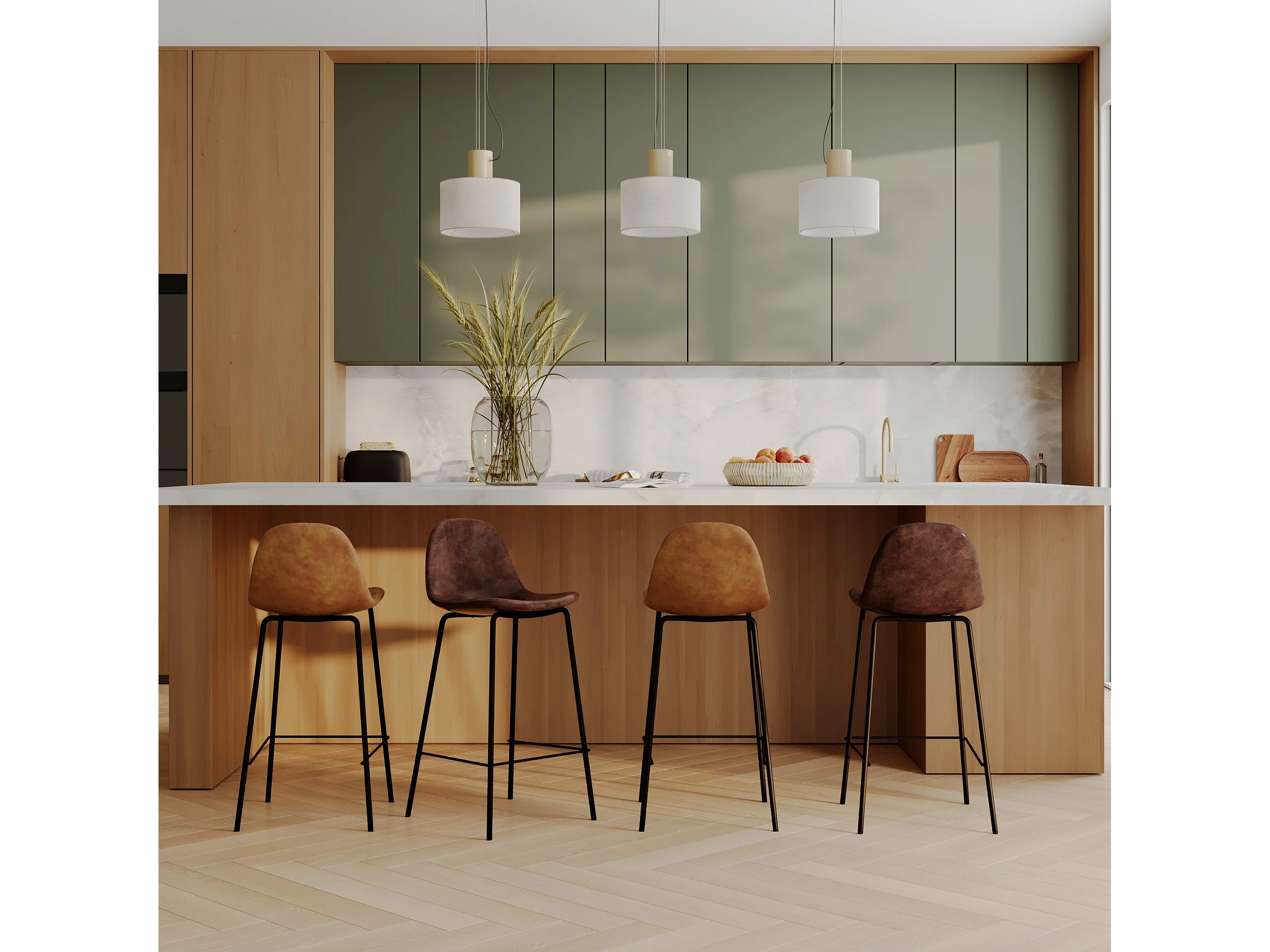 Pack di 4 sedie per isola centrale color cammello e marrone 65 cm - Henrik