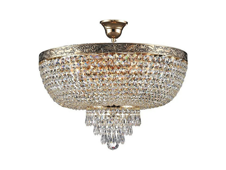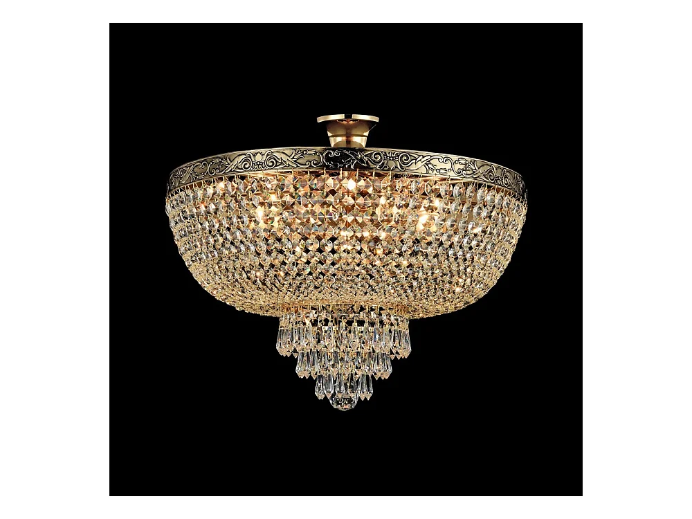 Palace Soffitto semi-incasso in oro antico e cristallo, 14 luci, E27