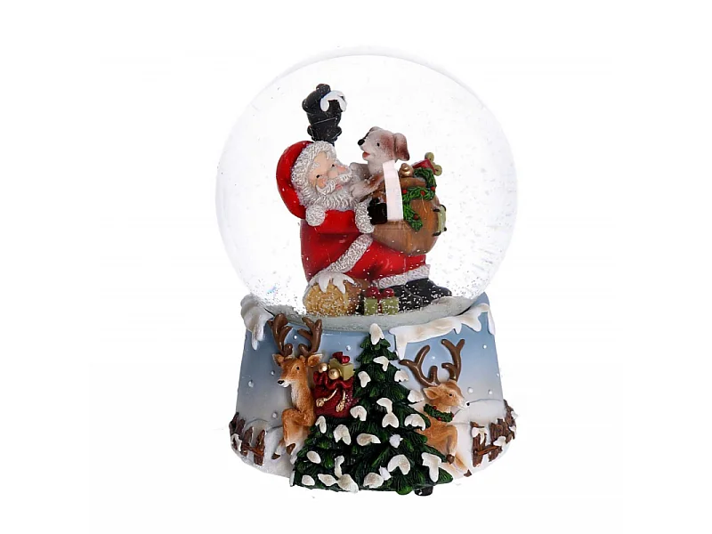 Palla di vetro con carillon babbo azzurro cm 10x11h14,5