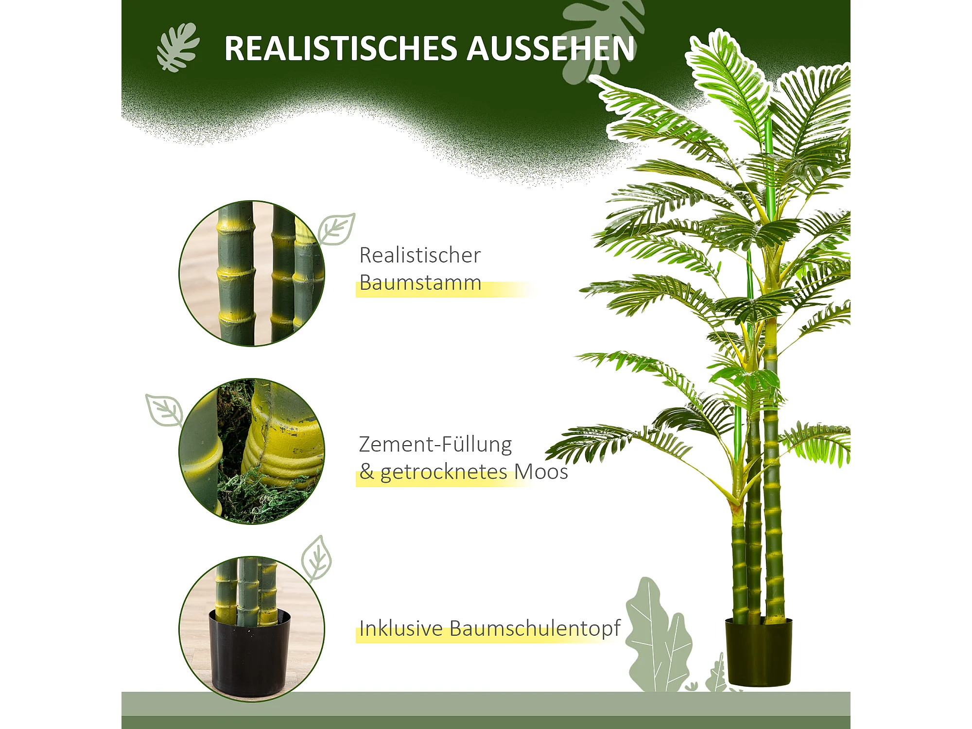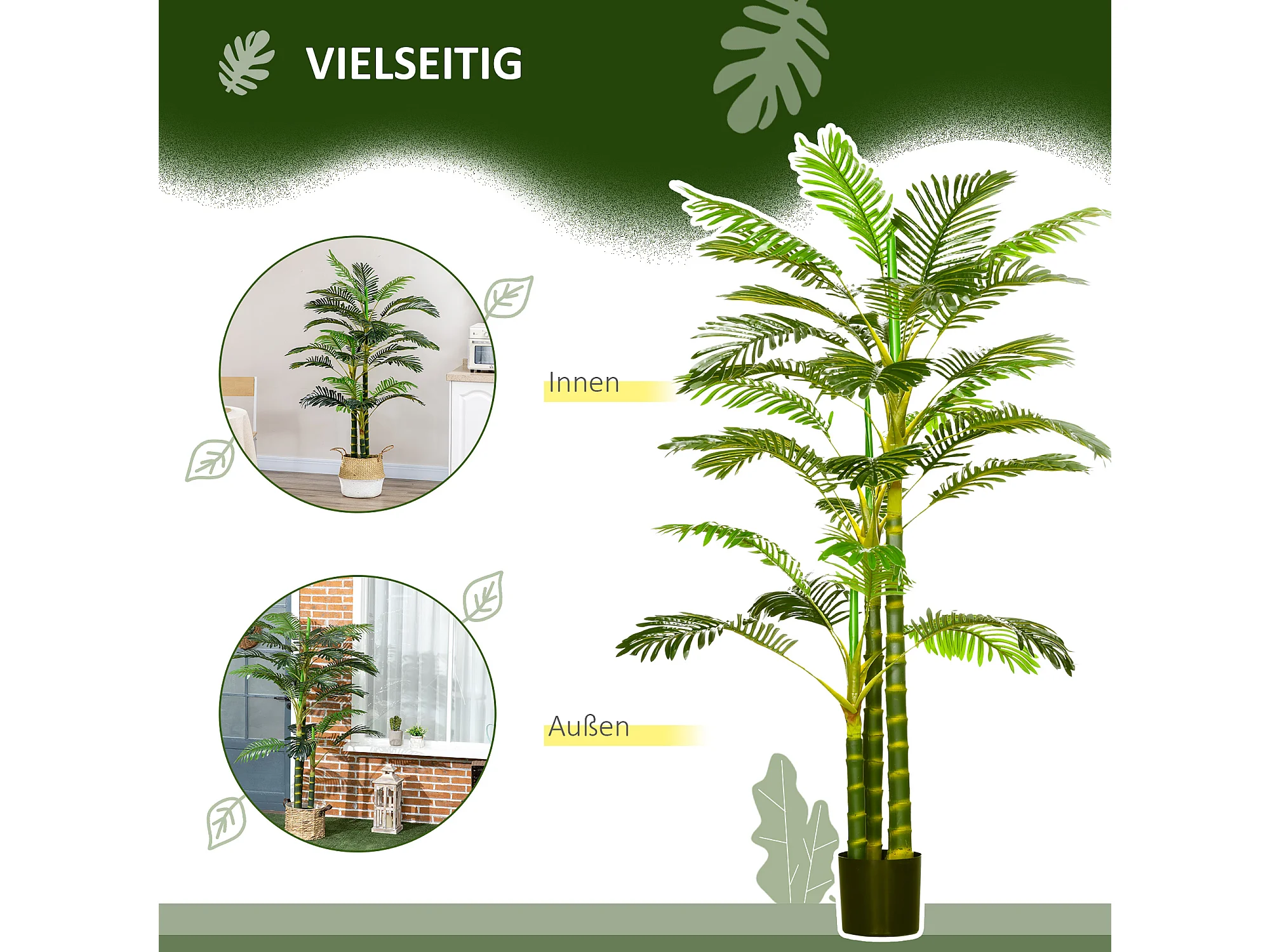 Palma artificiale da 190 cm, pianta decorativa in plastica, con vaso, per soggiorno, camera da letto, ufficio, verde (19,5x19,5x190 cm)