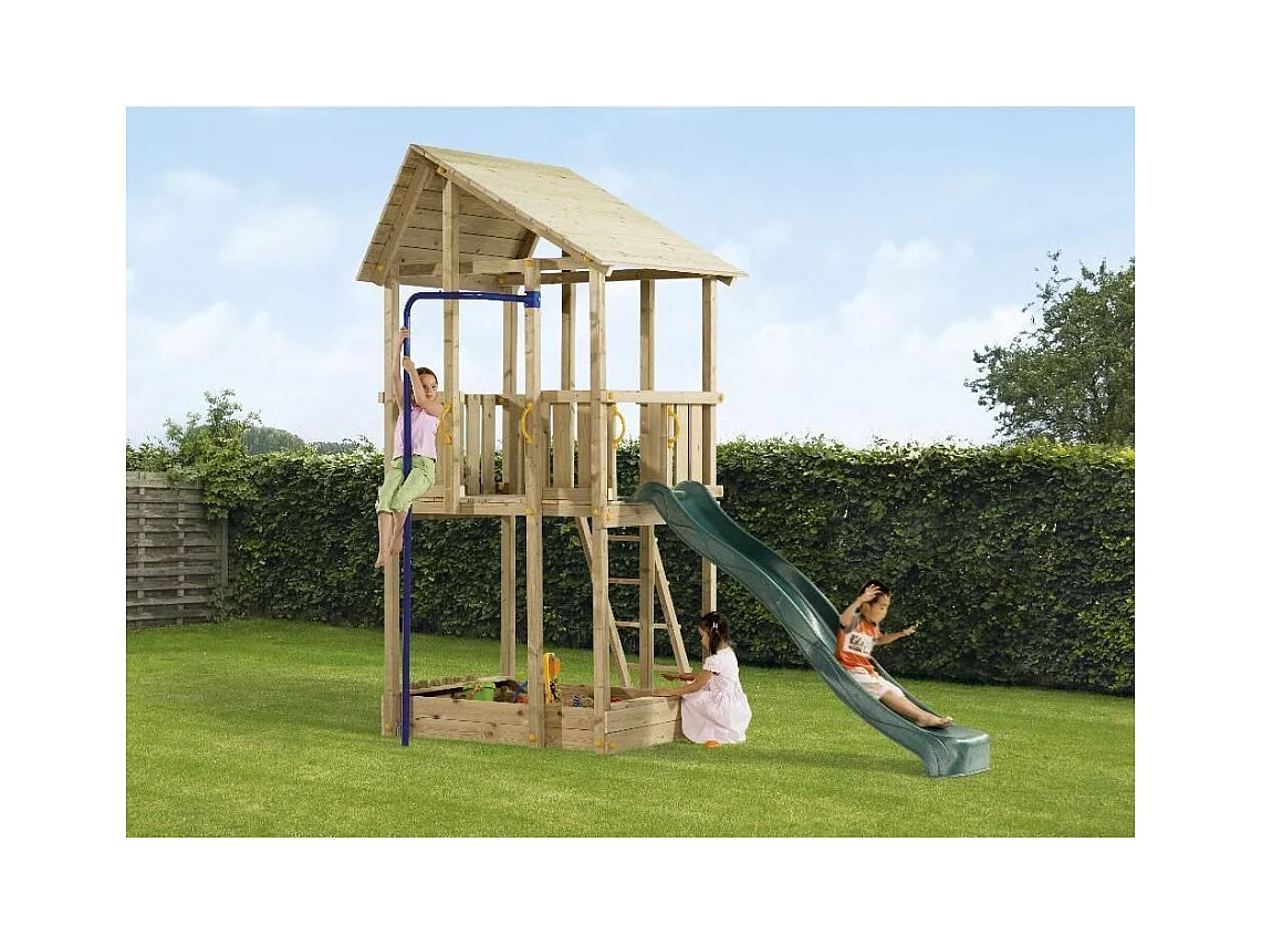Casetta per bambini in legno con scivolo - L182xL146xA205cm/ 1.1m2 - Timbela M501C