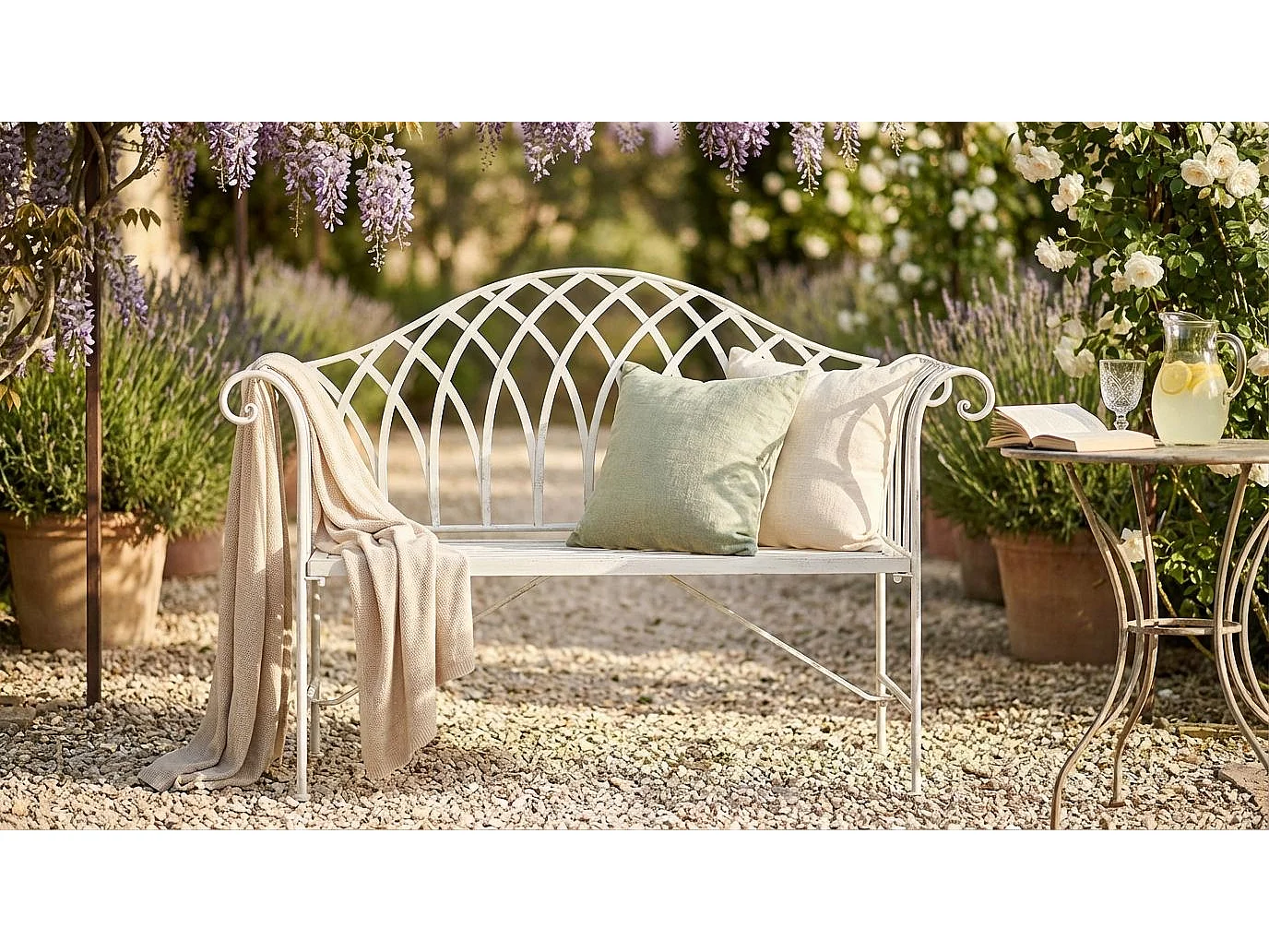 MilaniHome.it - Panca 2 Posti In Ferro Per Interno Esterno Ingresso Portico Piscina Giardino Veranda Ristorante Bar Albergo Agriturismodi coloreBianco