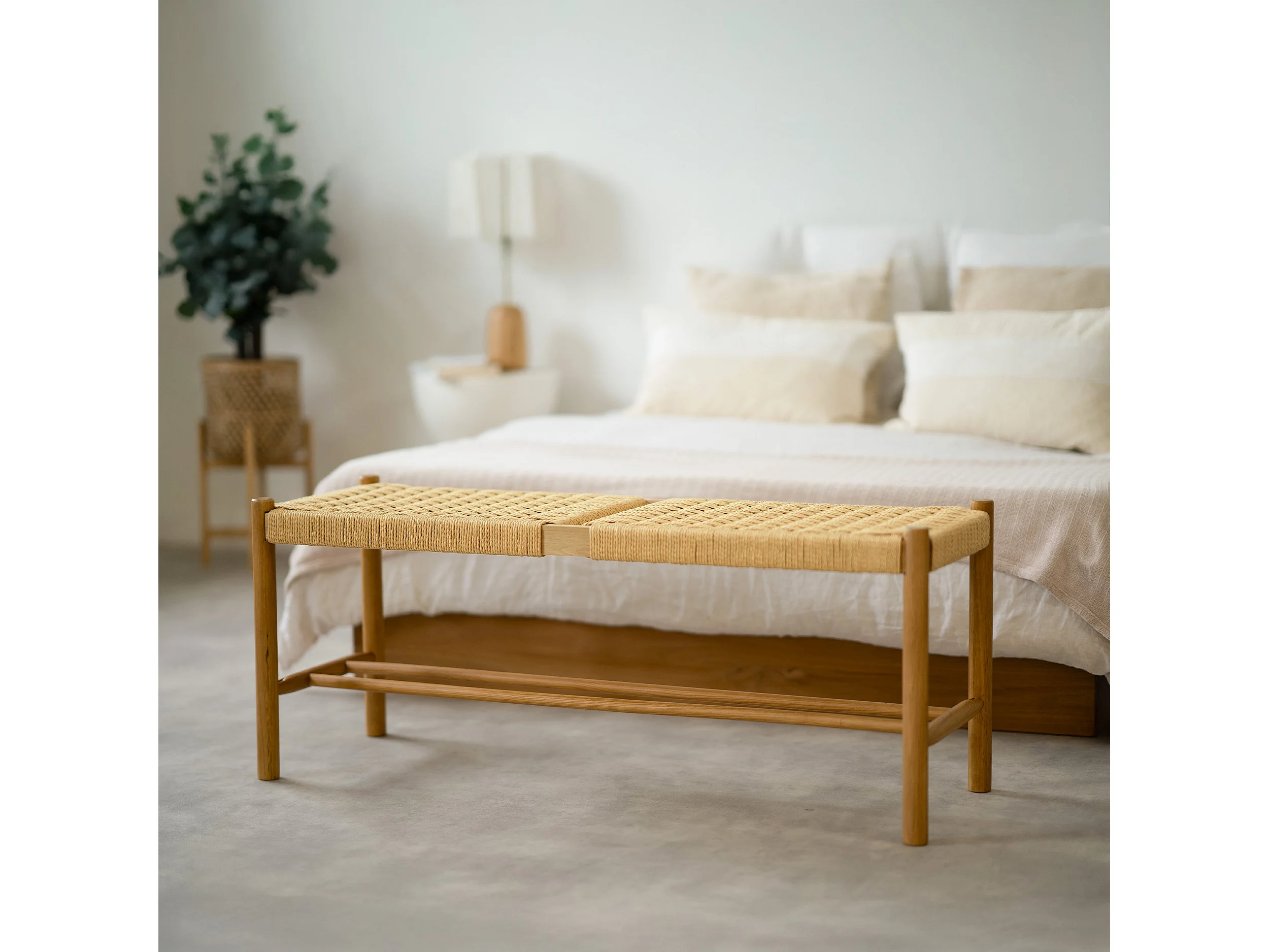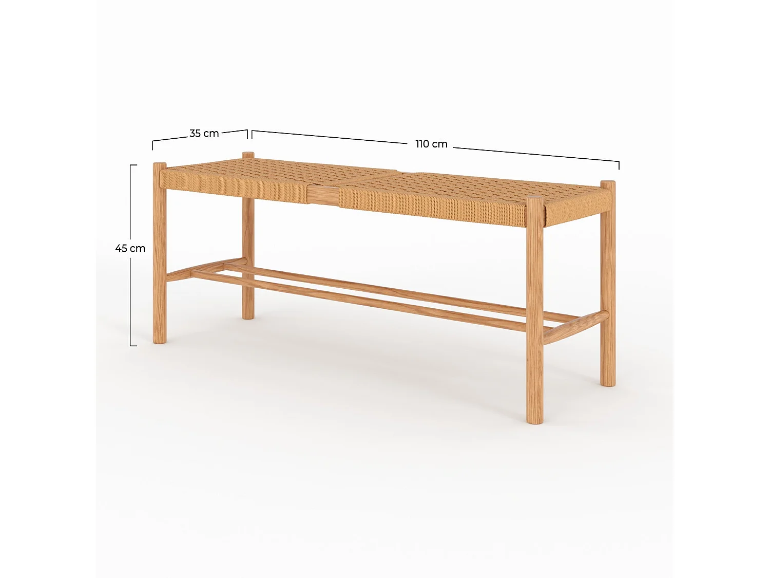 Panca a 2 posti in legno di quercia massiccia con intreccio - Kepler