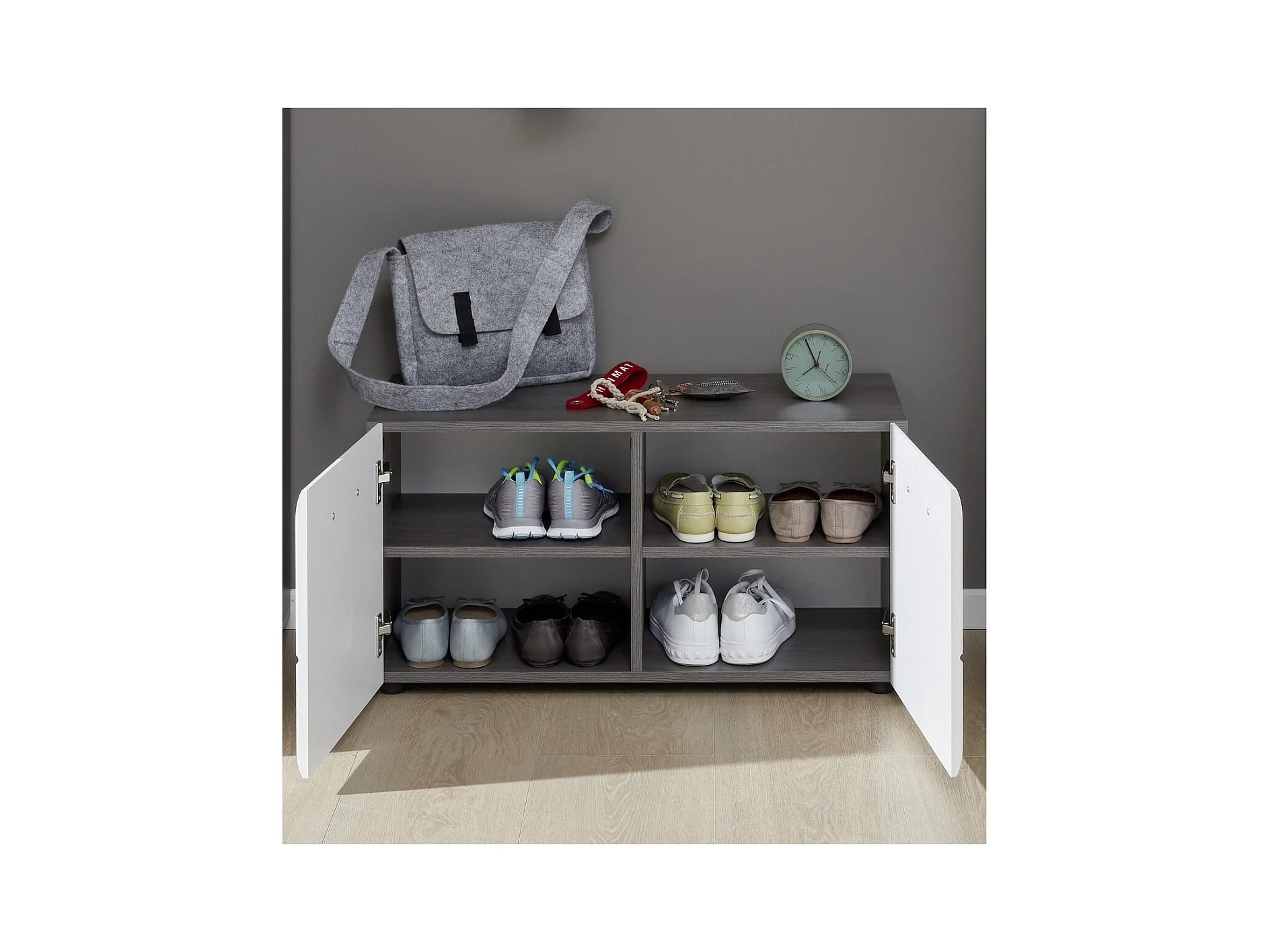 Sgabello scarpiera in legno grigio scuro 80x38x53h