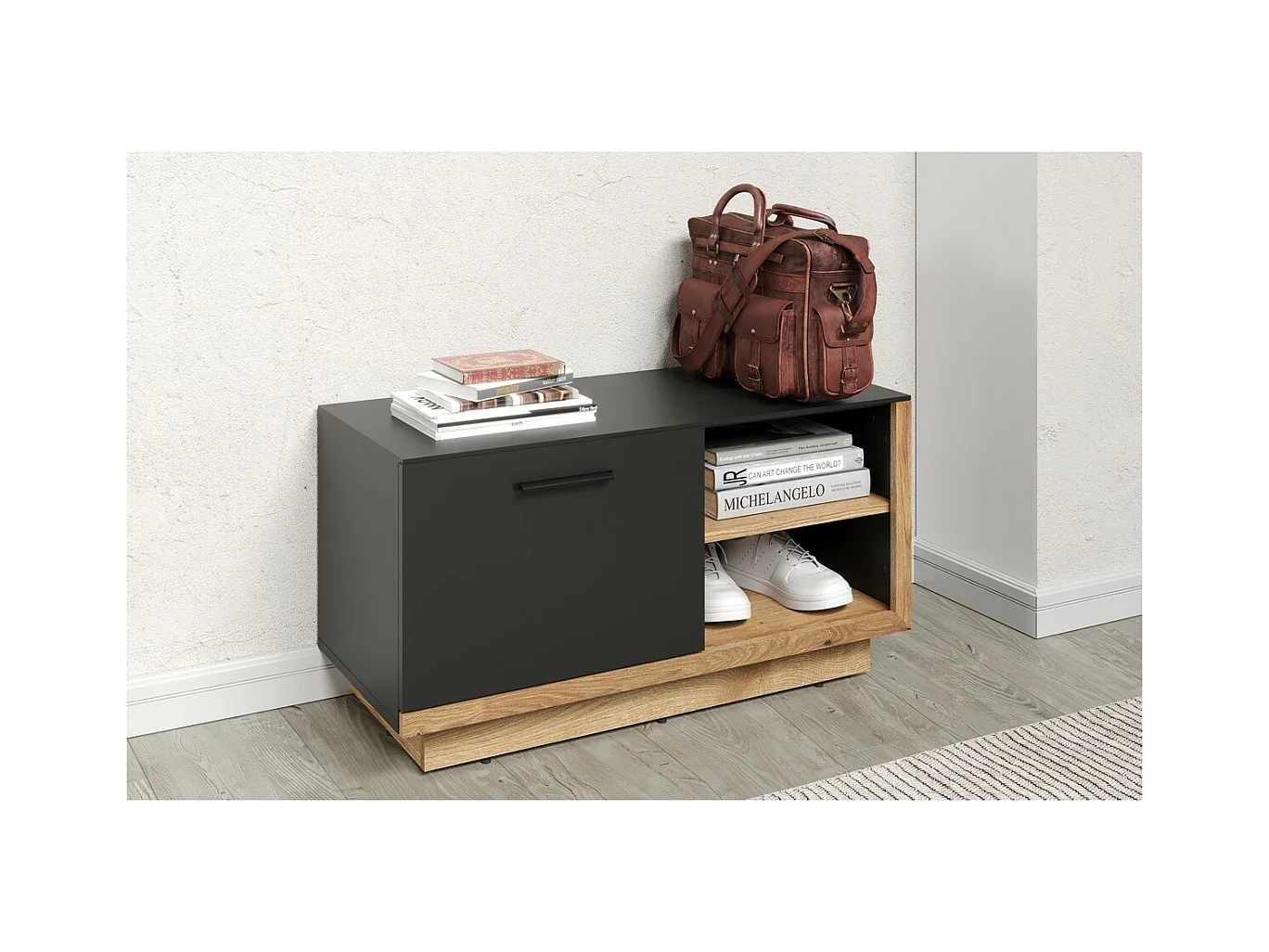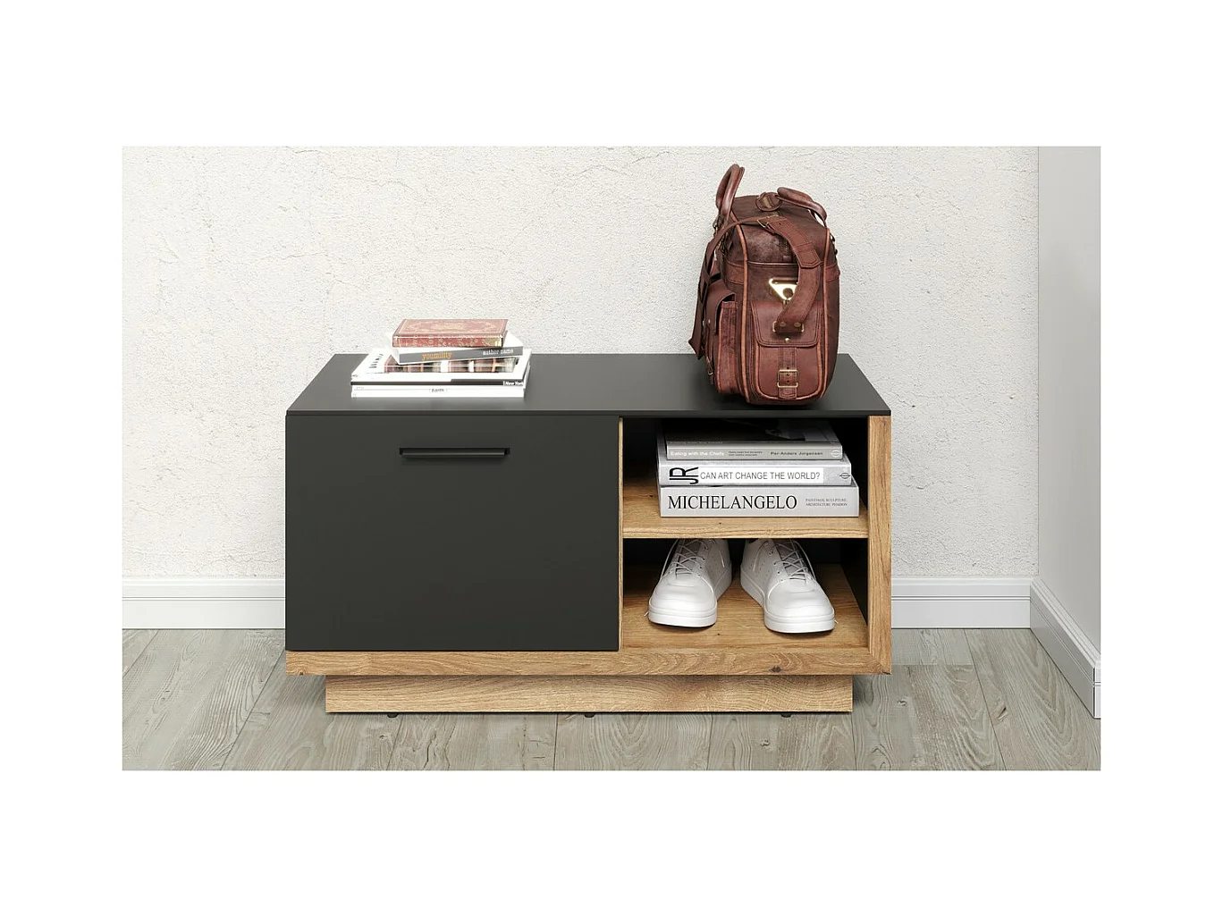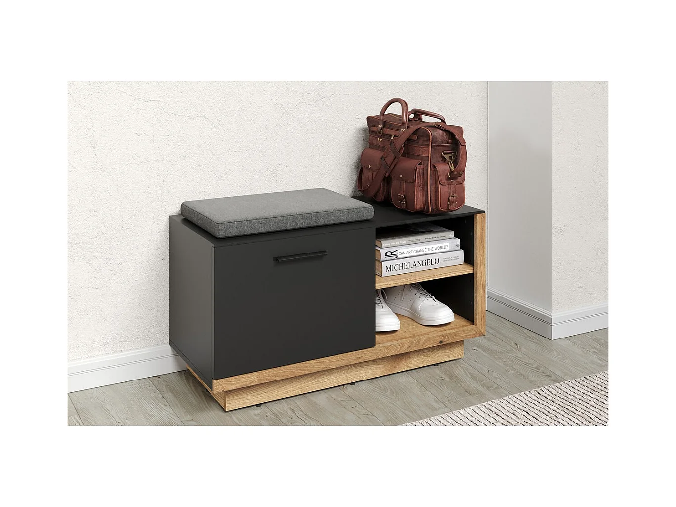 Panca con Portaoggetti Synnax, Antracite, 90x48x40 cm, EPIKASA