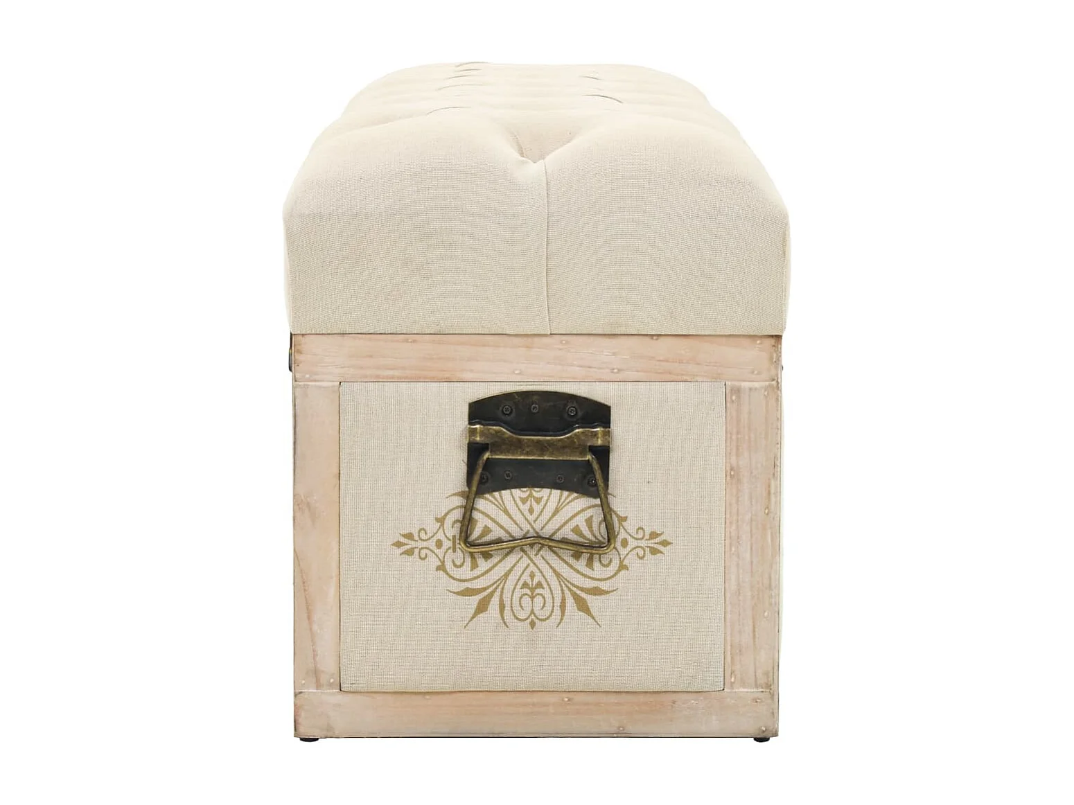 Panca contenitore 110 cm Crema Legno massello di abete e tessuto