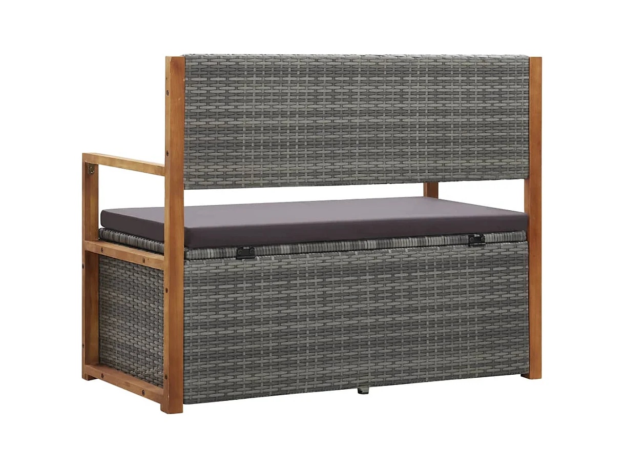 Panca da giardino con cuscino in resina intrecciata grigia e acacia