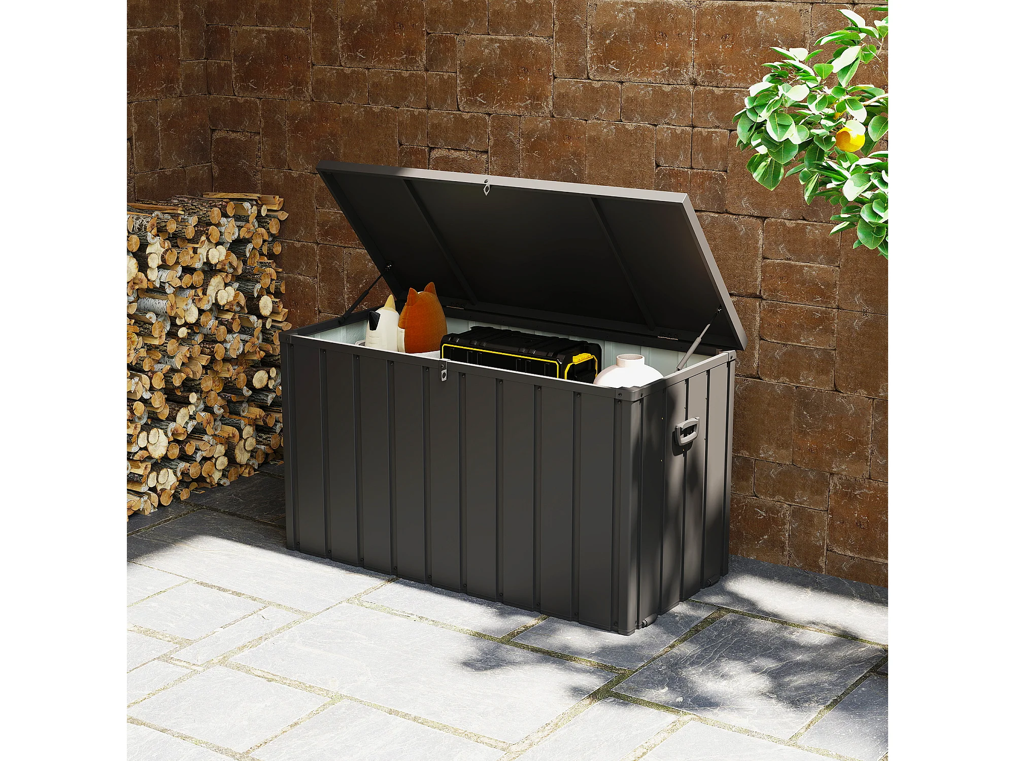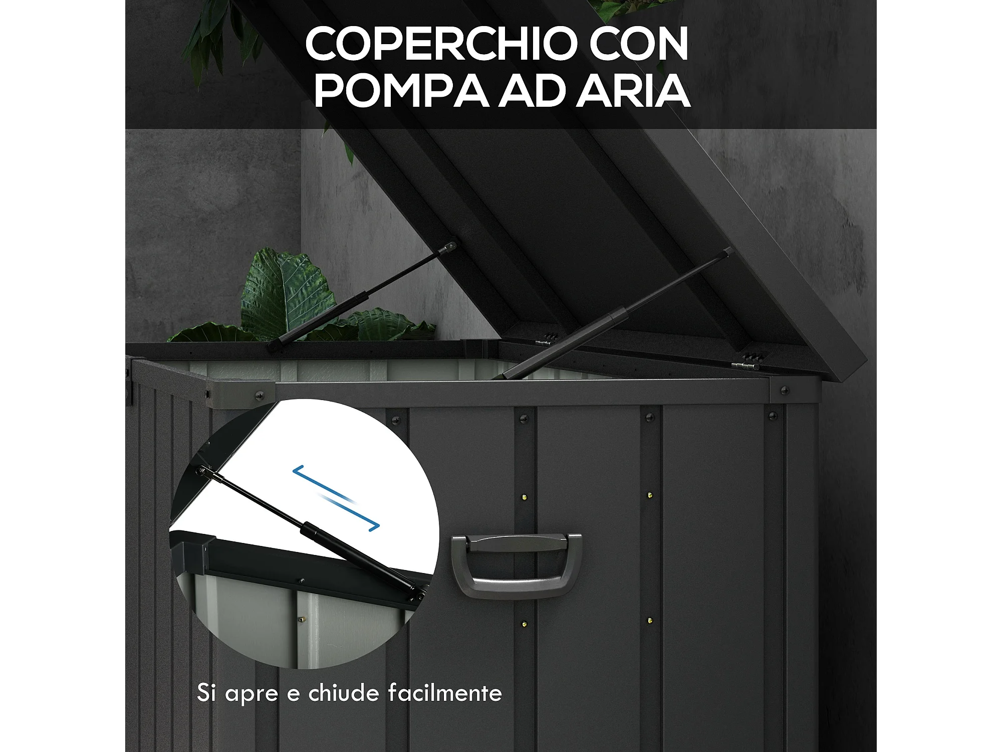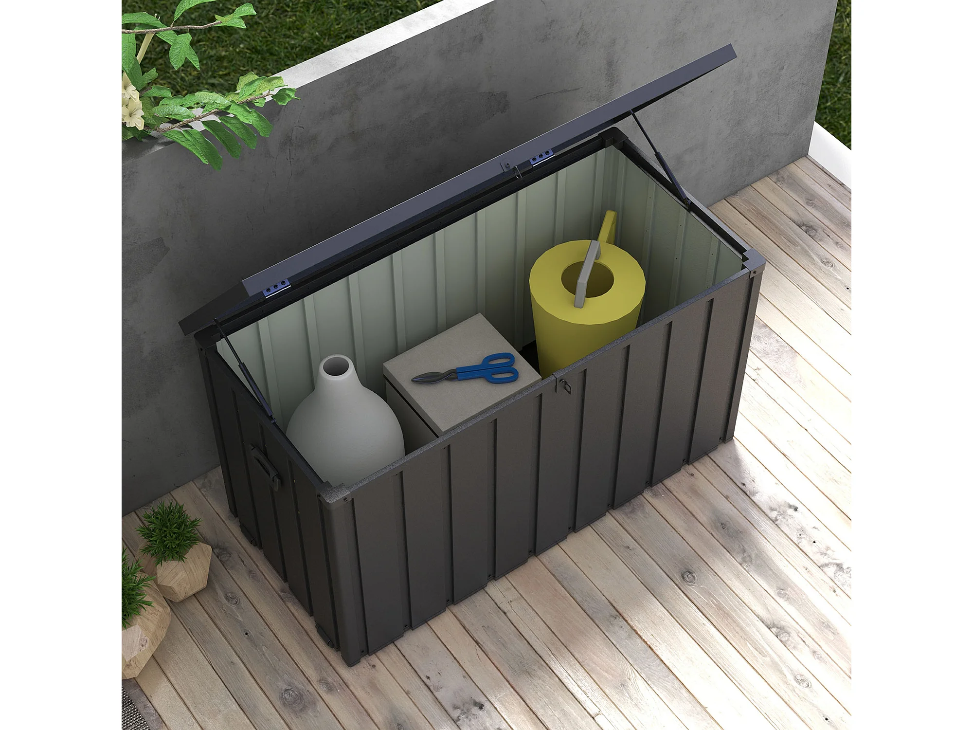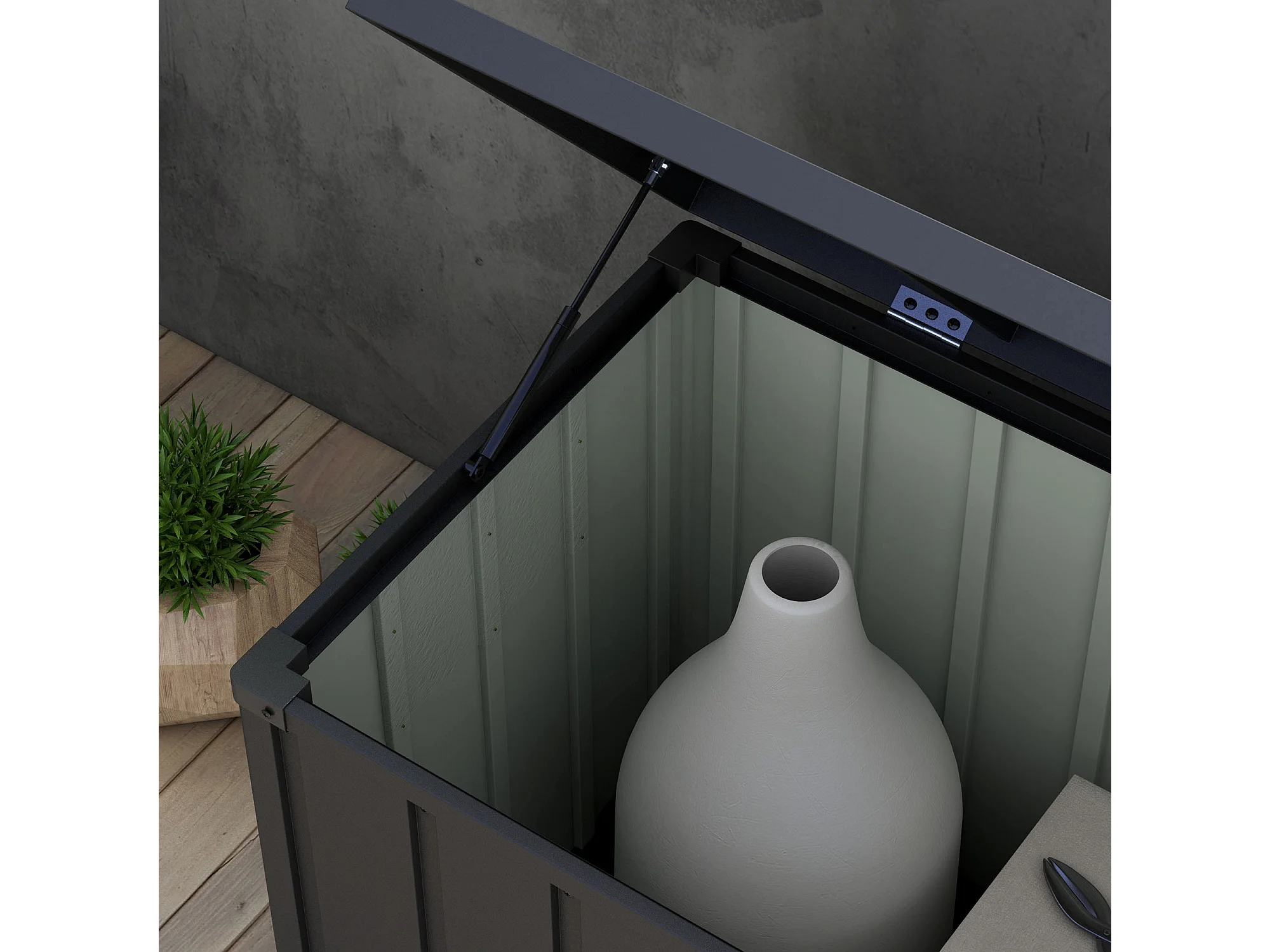 Panca contenitore da 450l in acciaio e pp grigio scuro