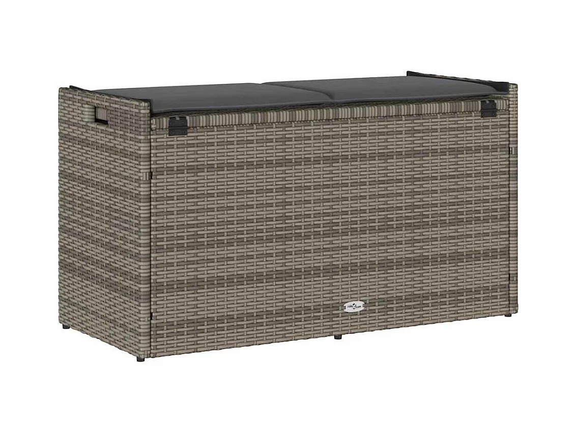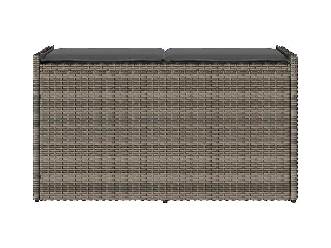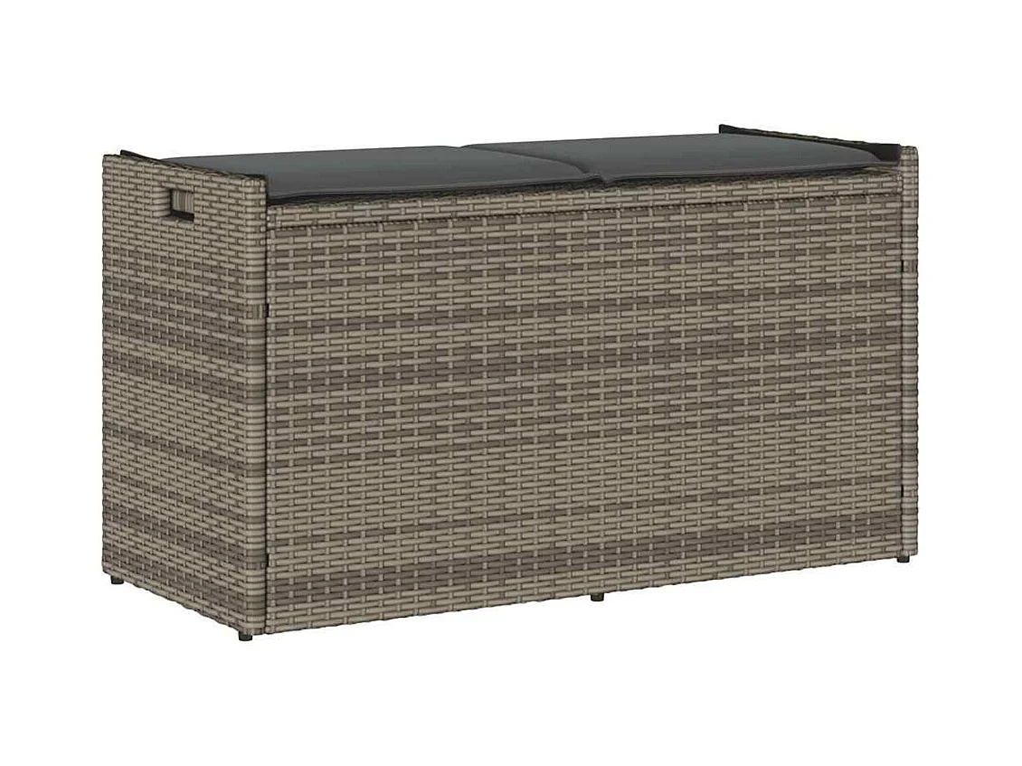 Panca contenitore da esterno con cuscino grigio 100 cm in resina intrecciata