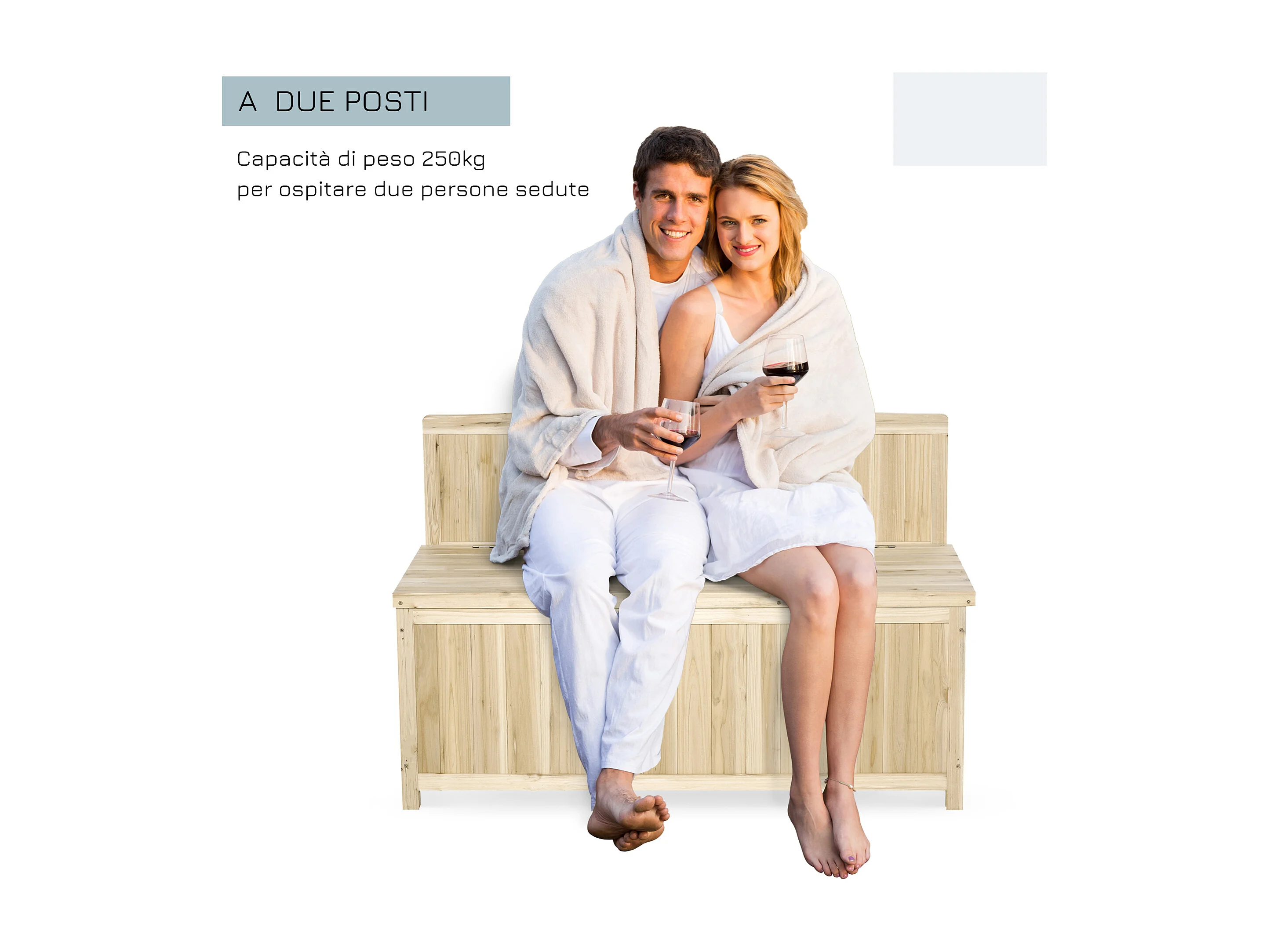 Panca Contenitore da Esterno con Schienale in Legno di Abete per Giardino Terrazza