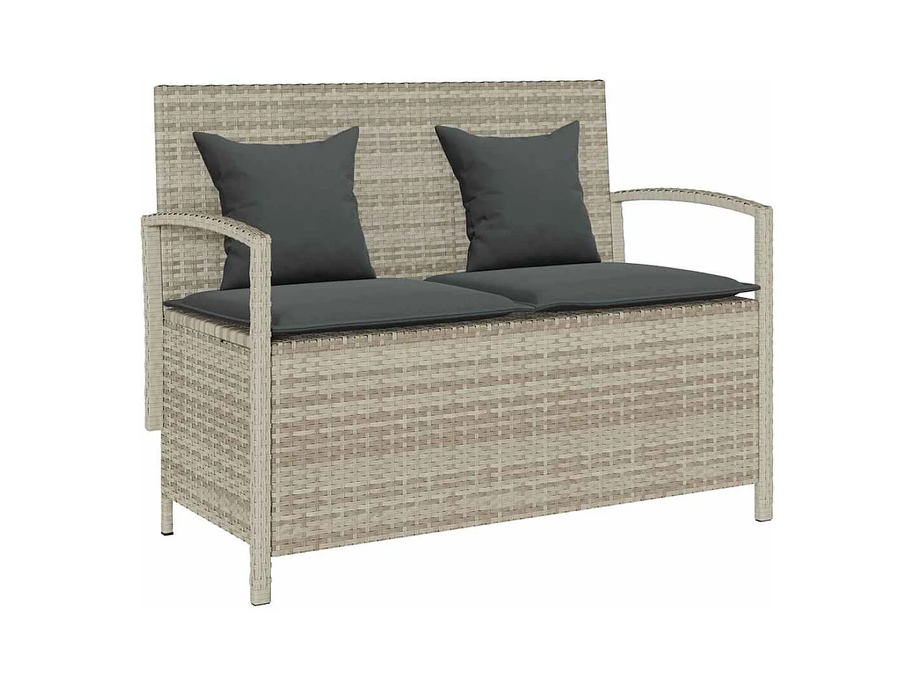 Panca contenitore da giardino con cuscino in vimini grigio