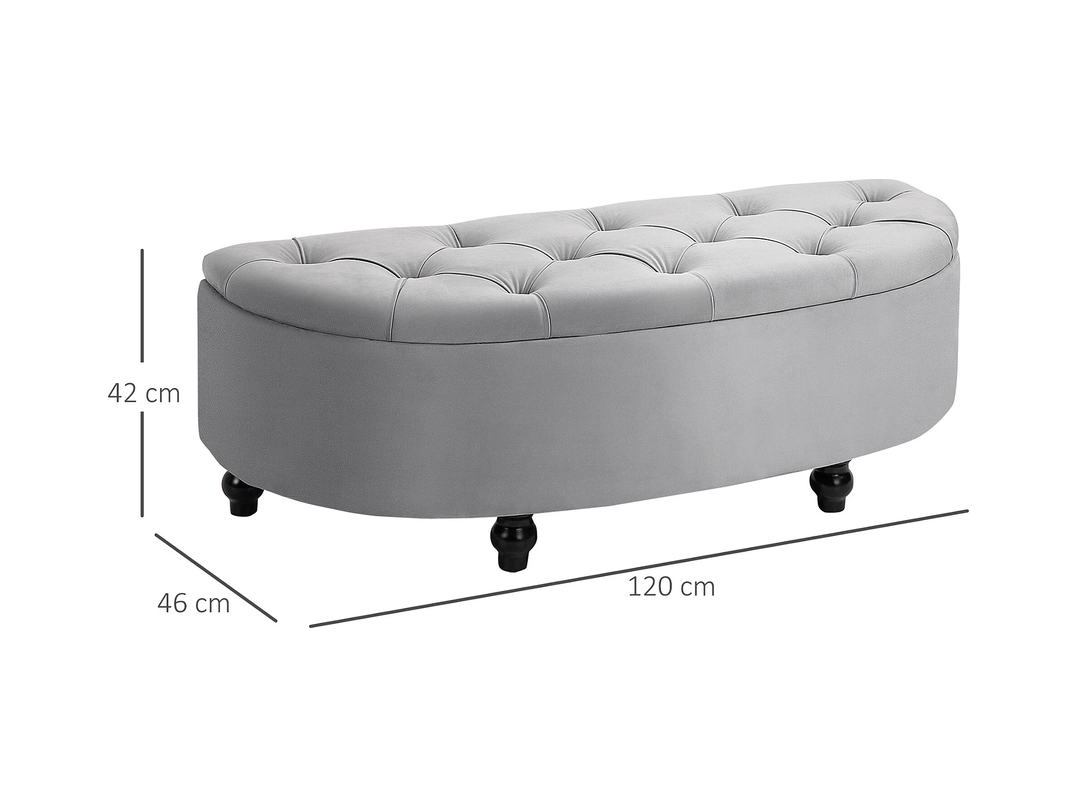 Panca contenitore fondoletto capitonné a semicerchio in velluto grigio