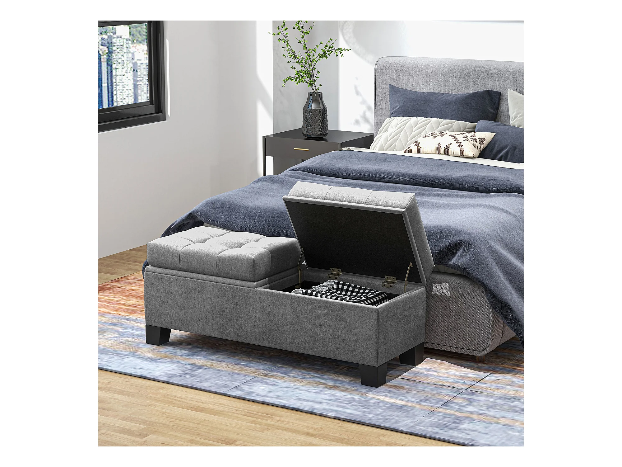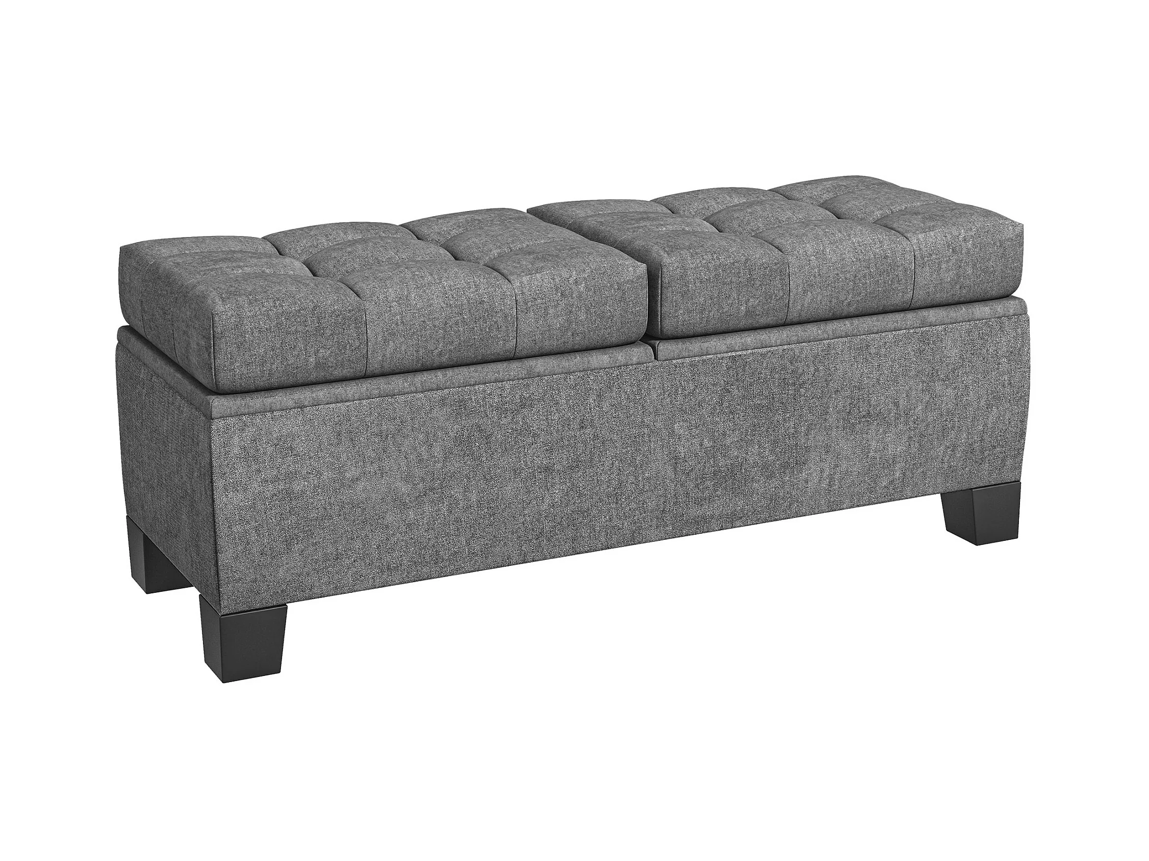 Aufbewahrungshocker mit Holzbeinen, gepolsterter Pouf, Polyestergewebe, grau (68x38x42 cm)