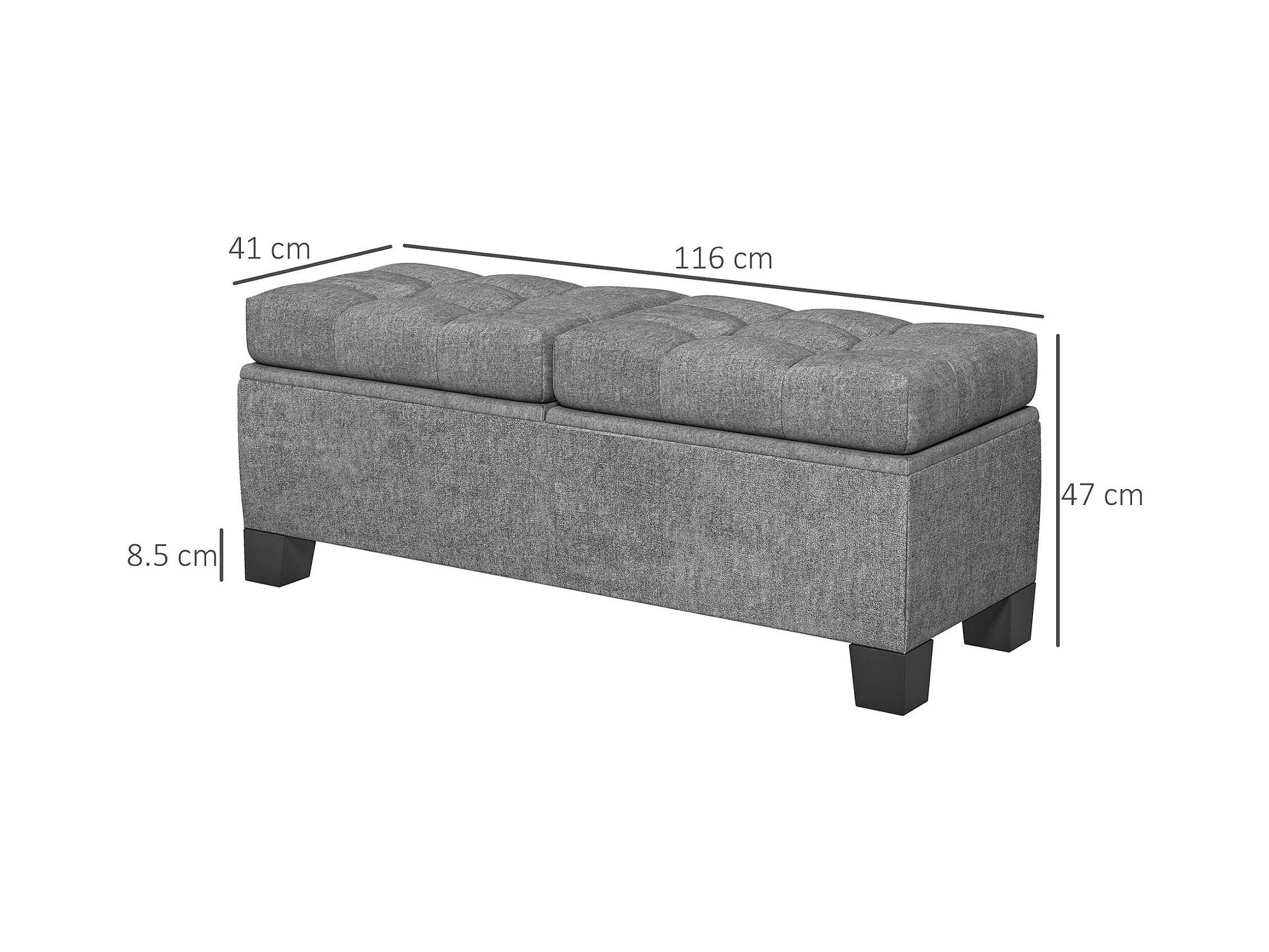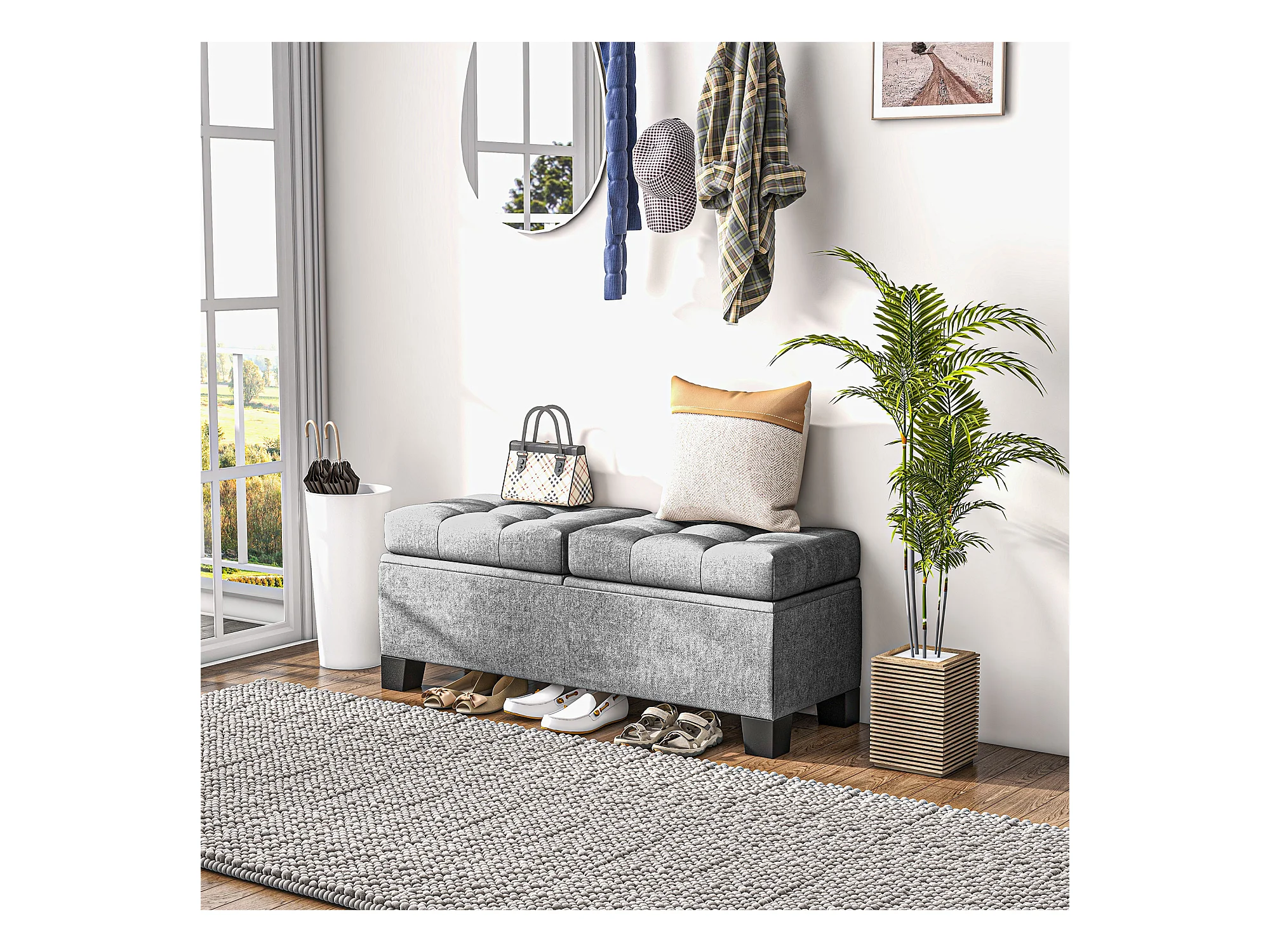 Gepolsterte Sitztruhe mit Leinenkissen, grau, mit Stauraum (125x49x41,5 cm)