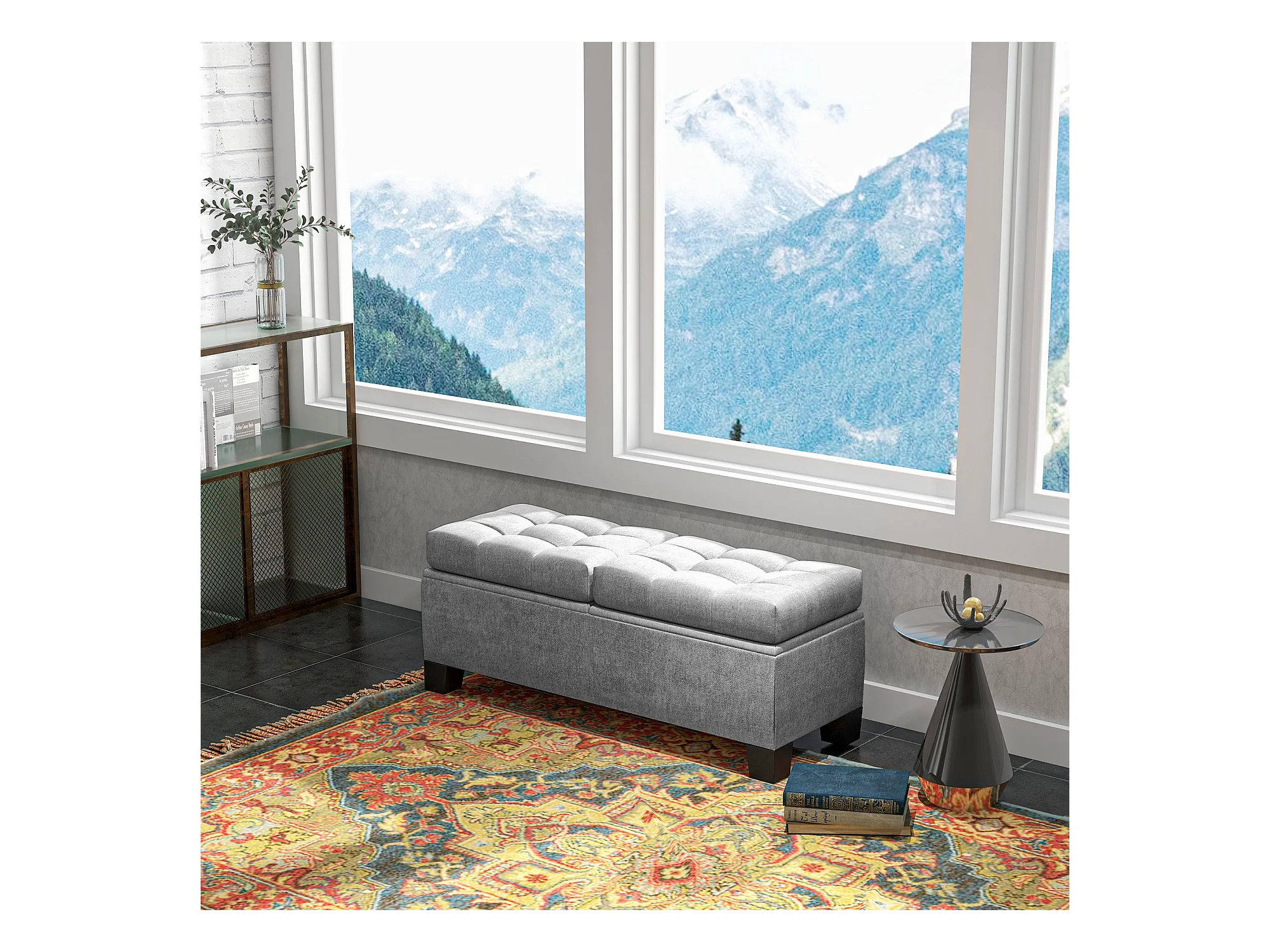 Gepolsterte Sitzbank mit Stauraum, integrierter Stauraum, Polyester in Leinenoptik, Gummibaumholz, hellgrau (100 x 40 x 44 cm)