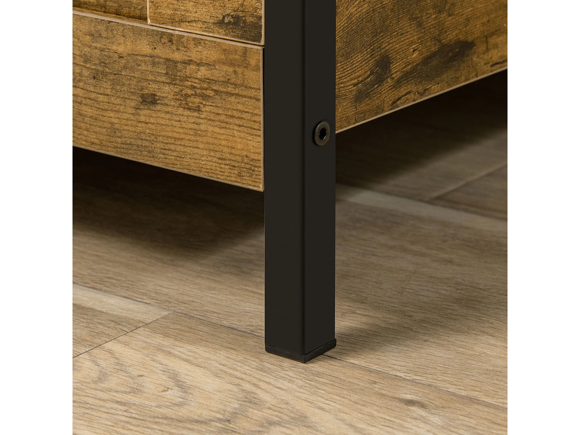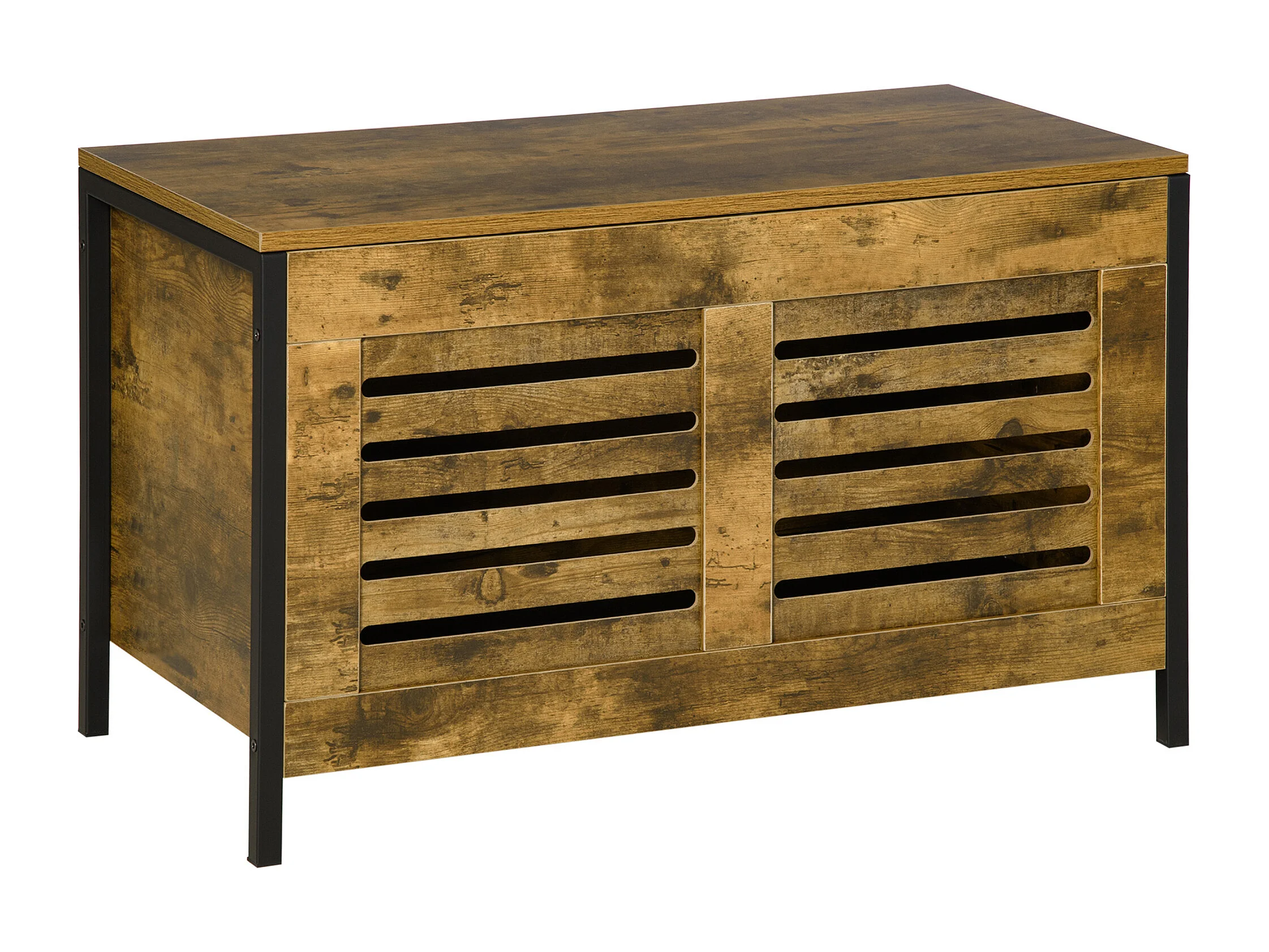 Panca contenitore in stile industriale, truciolato e acciaio, marrone rustico (80x40x49cm)