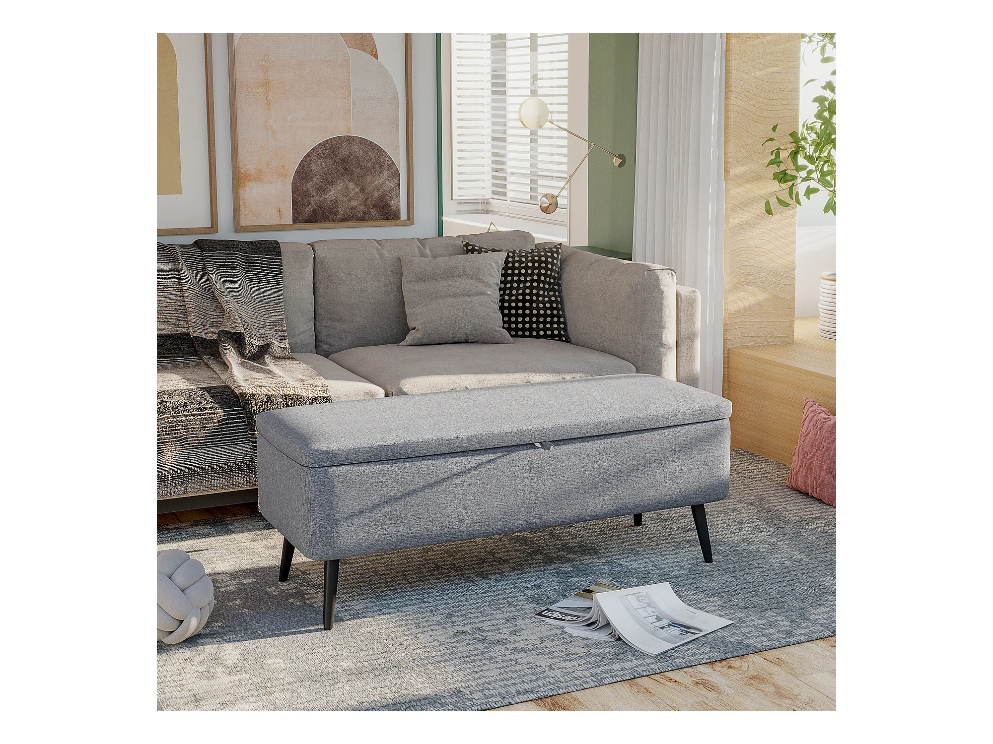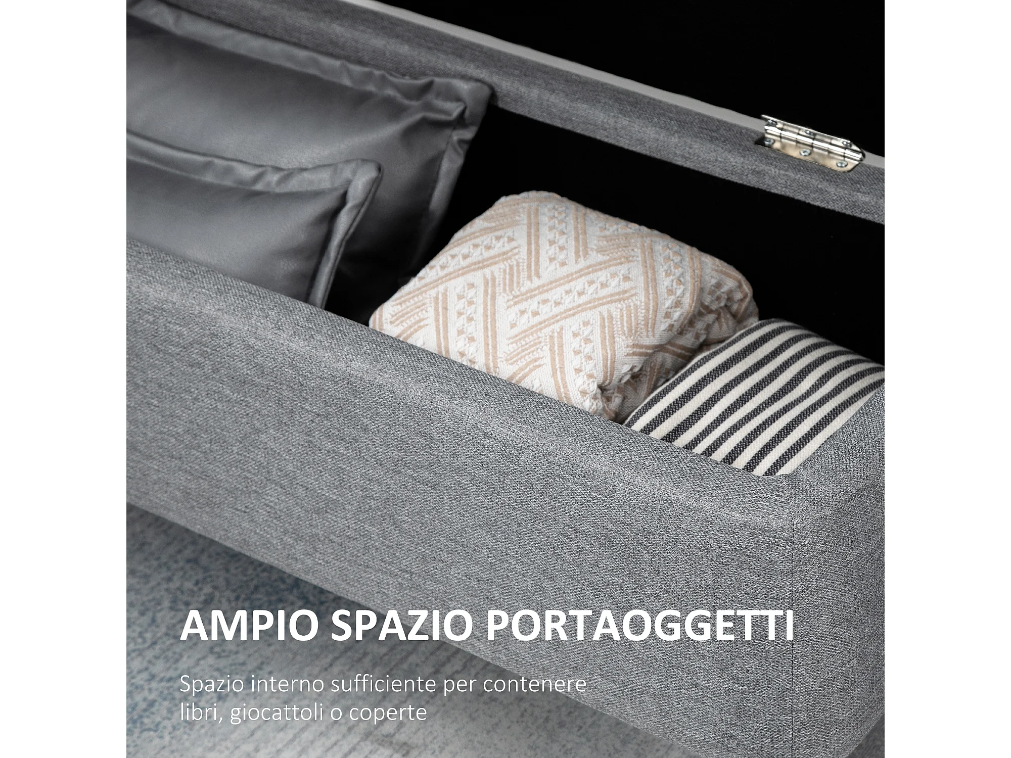 Panca contenitore imbottita in tessuto 111.5x41x65cm grigio