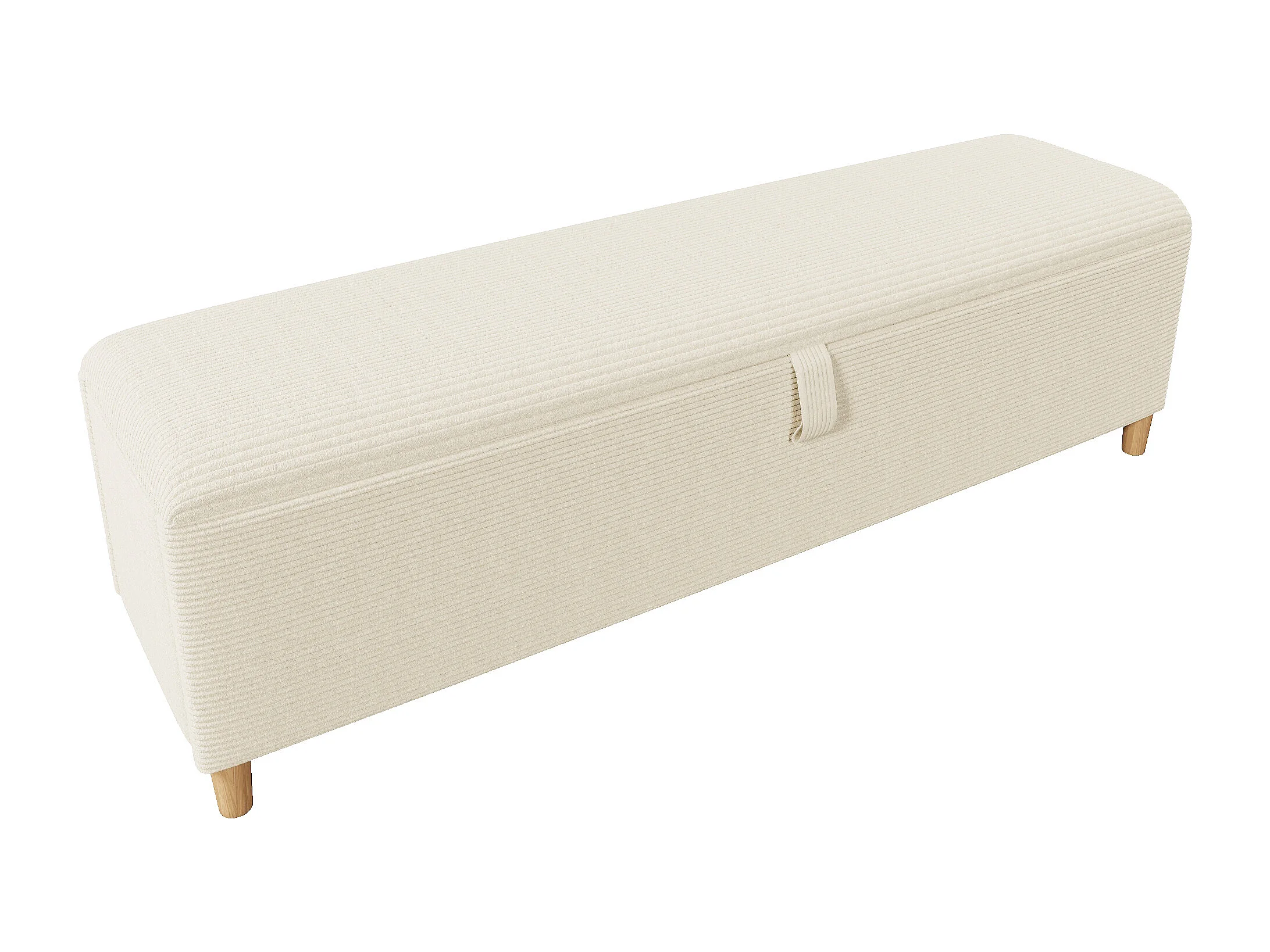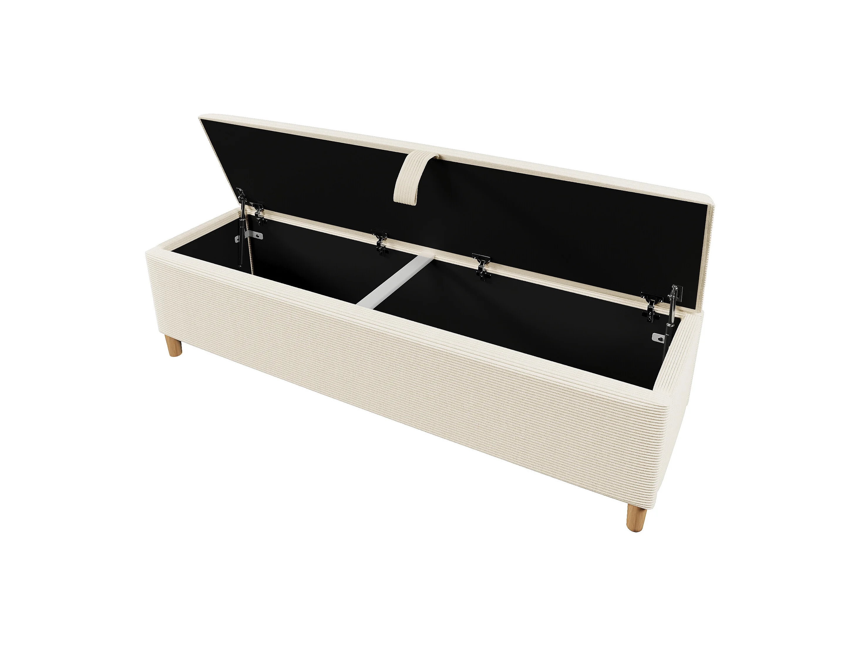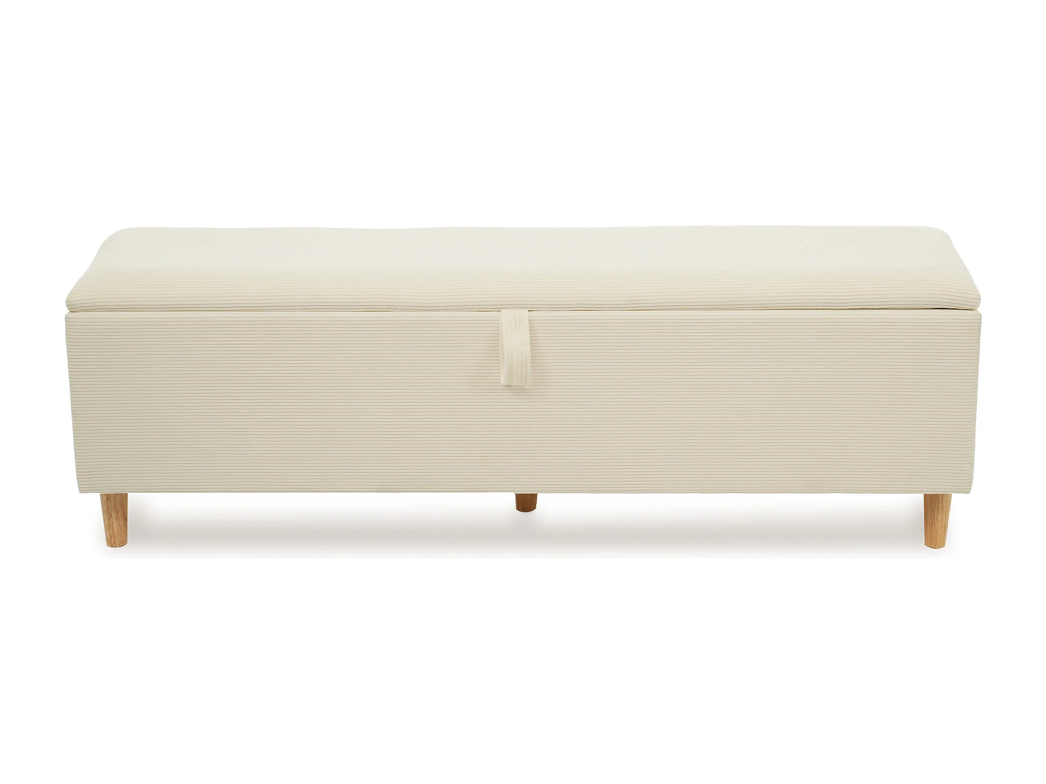 Panca contenitore in velluto a coste beige, 165x38x46 cm
