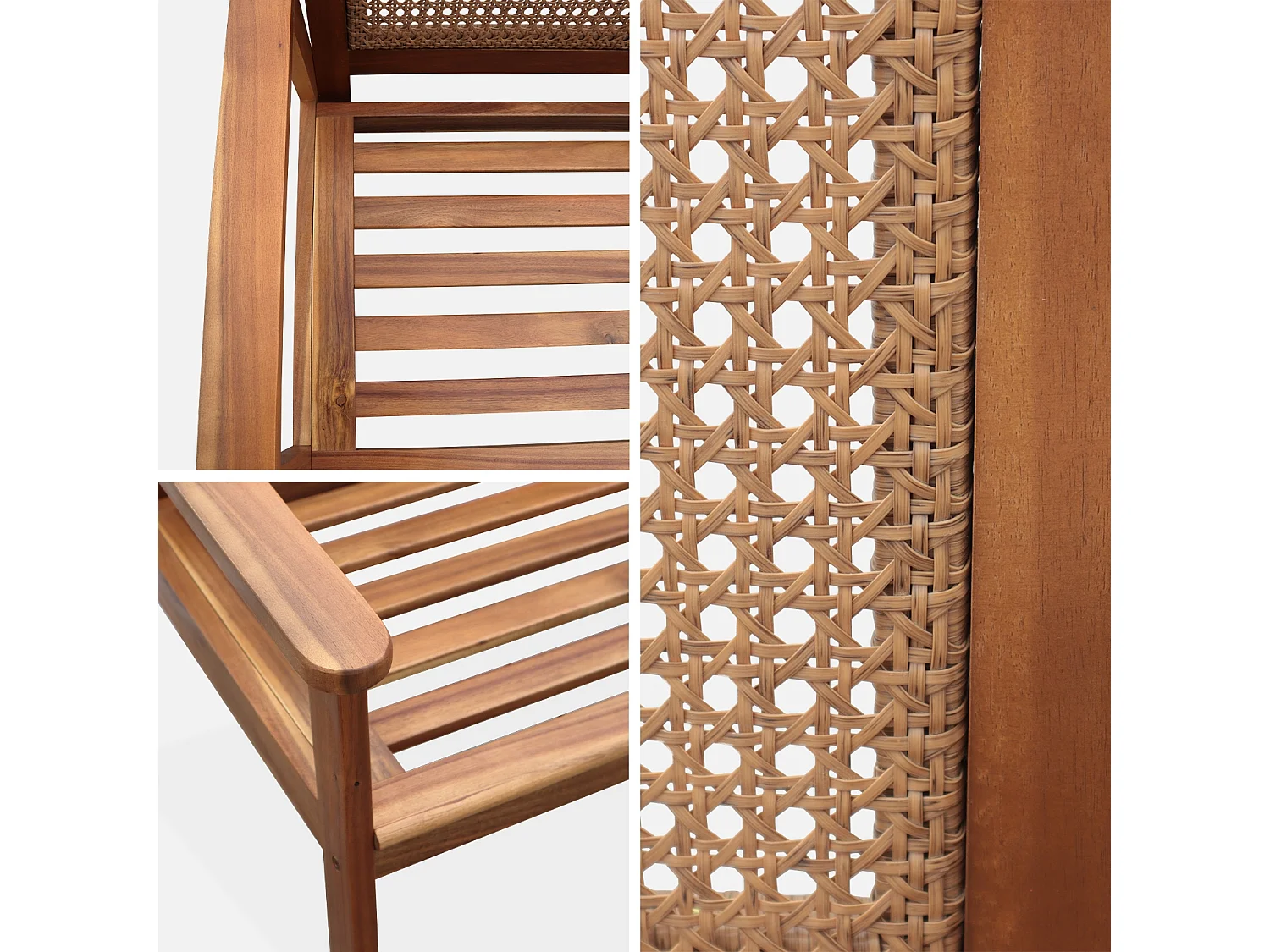 Panca da giardino a 2 posti con cuscini In resina intrecciata Marrone
