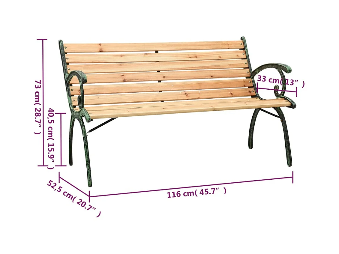 Panca da Giardino 116 cm in Ghisa e Legno Massello di Abete