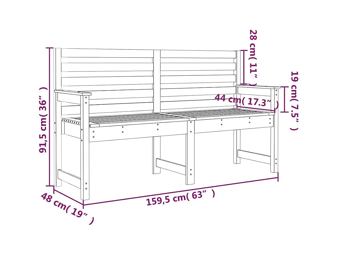 Panca da giardino 159,5x48x91,5 cm in legno di pino massiccio