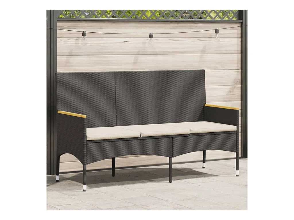 Panca da giardino a 3 posti con cuscini in resina intrecciata nera