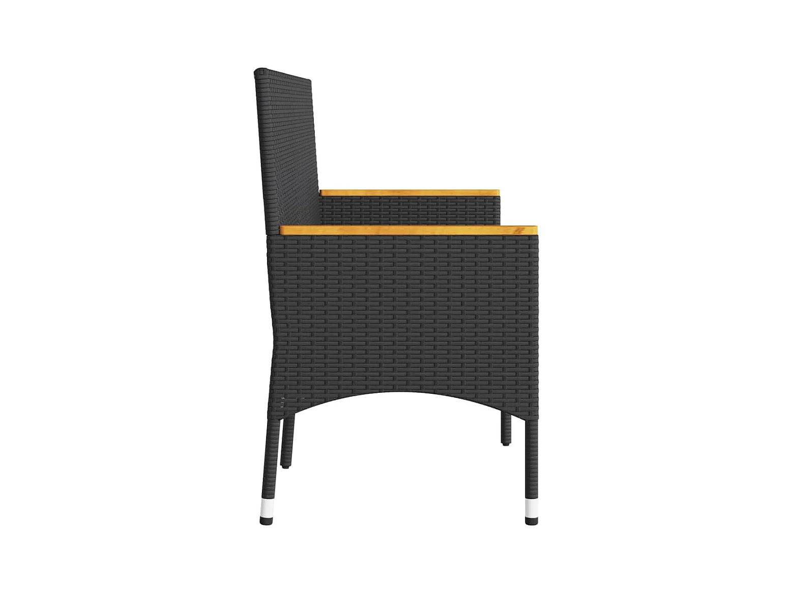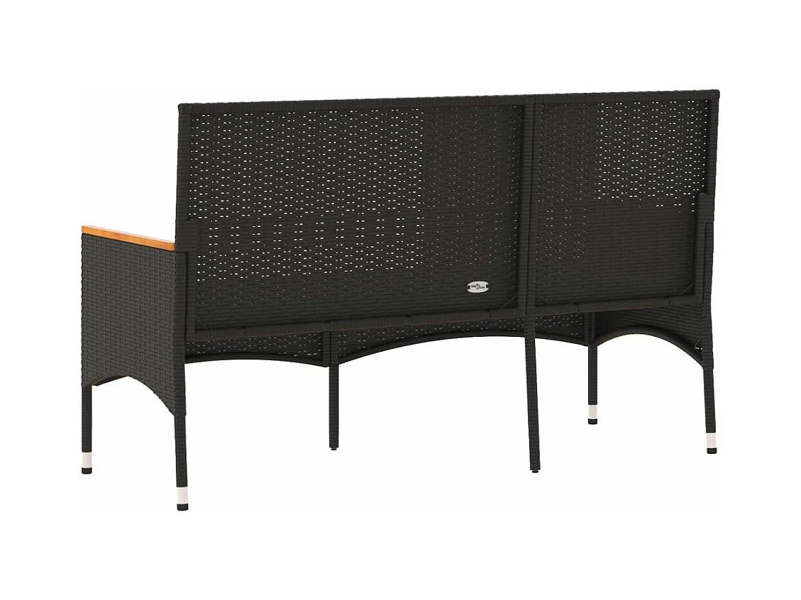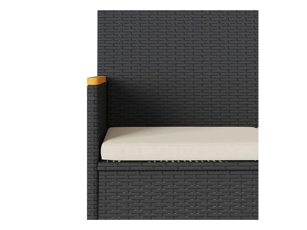 Panca da giardino con cuscino in resina intrecciata nera e acacia