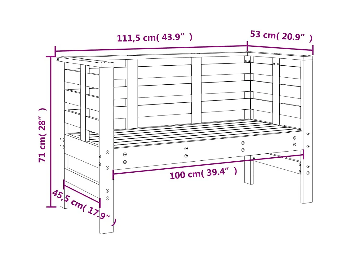 Panca da giardino bianca 111,5x53x71 cm in legno di pino massiccio