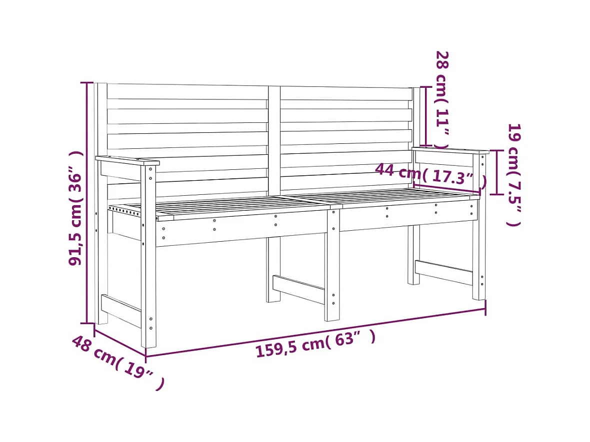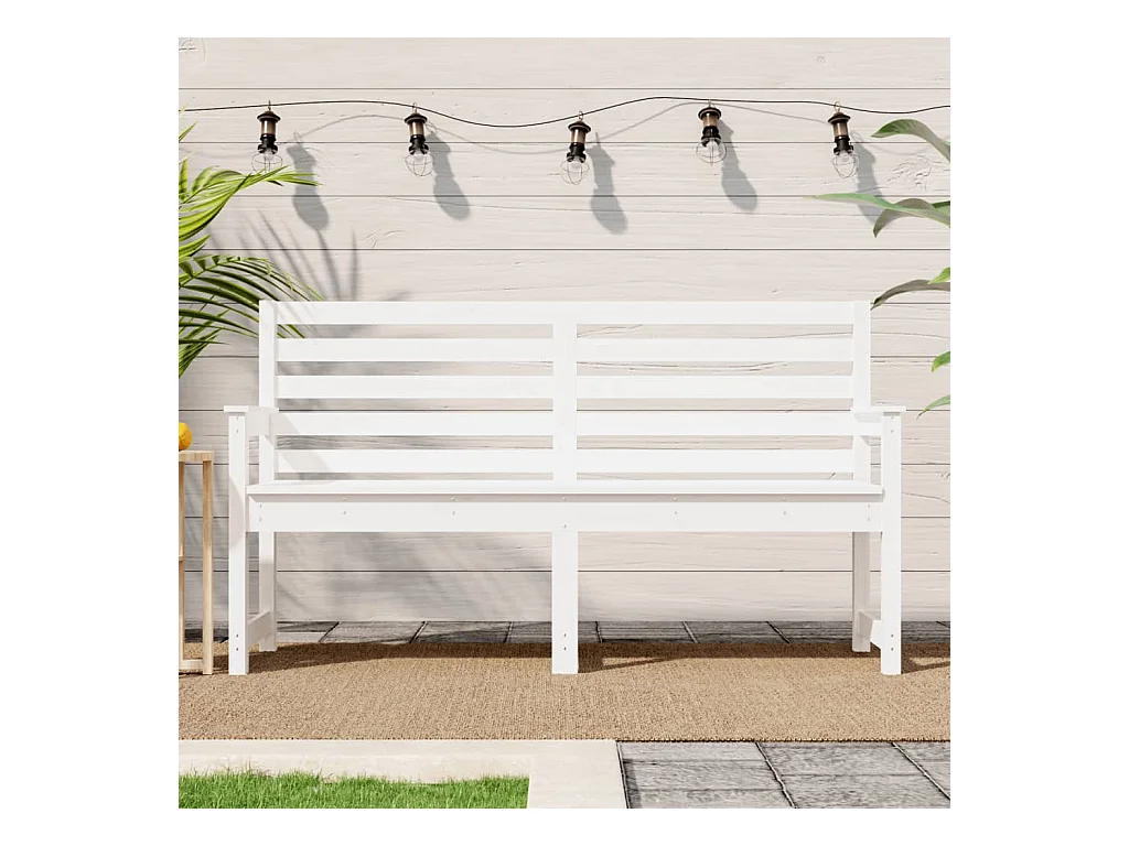 Panca da Giardino Bianca 159,5x48x91,5cm Legno Massello di Pino