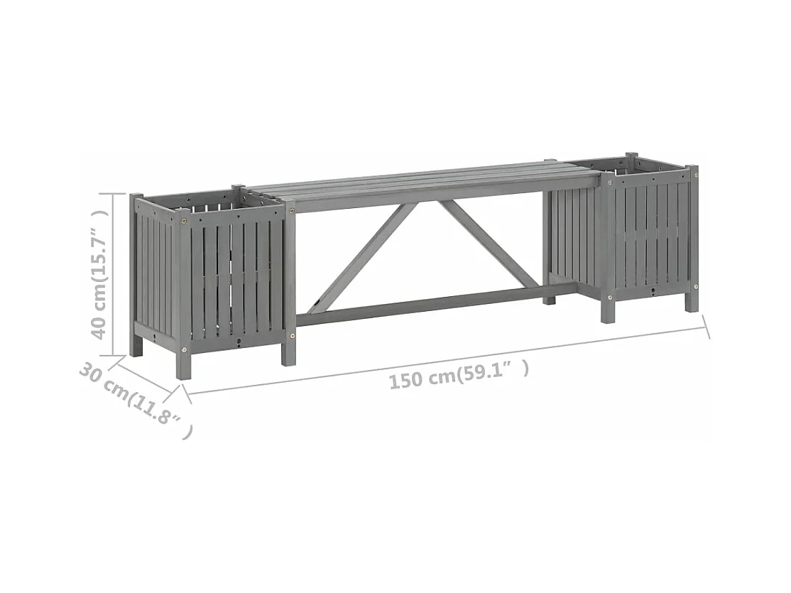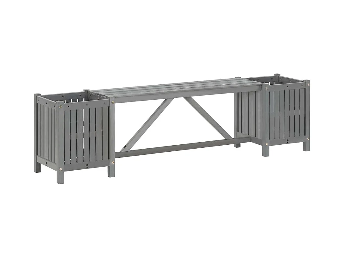 Panca da giardino con 2 fioriere 150 cm in legno di acacia grigia