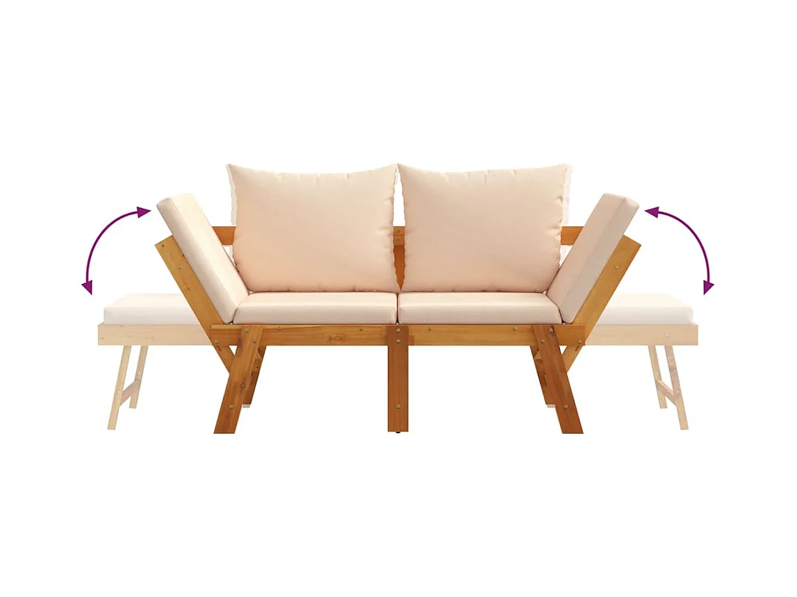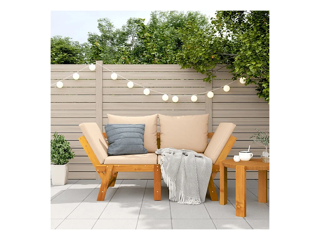 Panca da giardino con cuscini 2 in 1 in legno massello di acacia