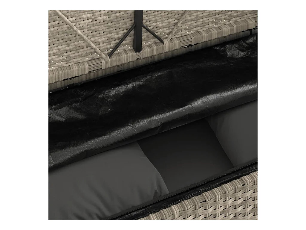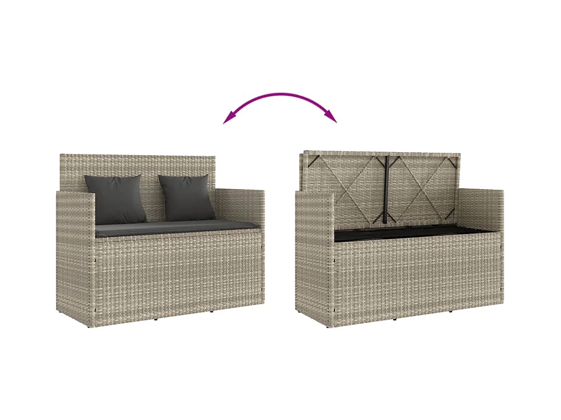 Panca da giardino con cuscini in resina intrecciata grigio chiaro