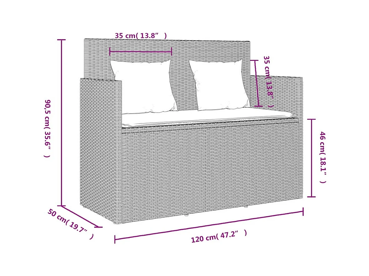 Panca da giardino a 2 posti e cuscini in rattan PP grigio scuro