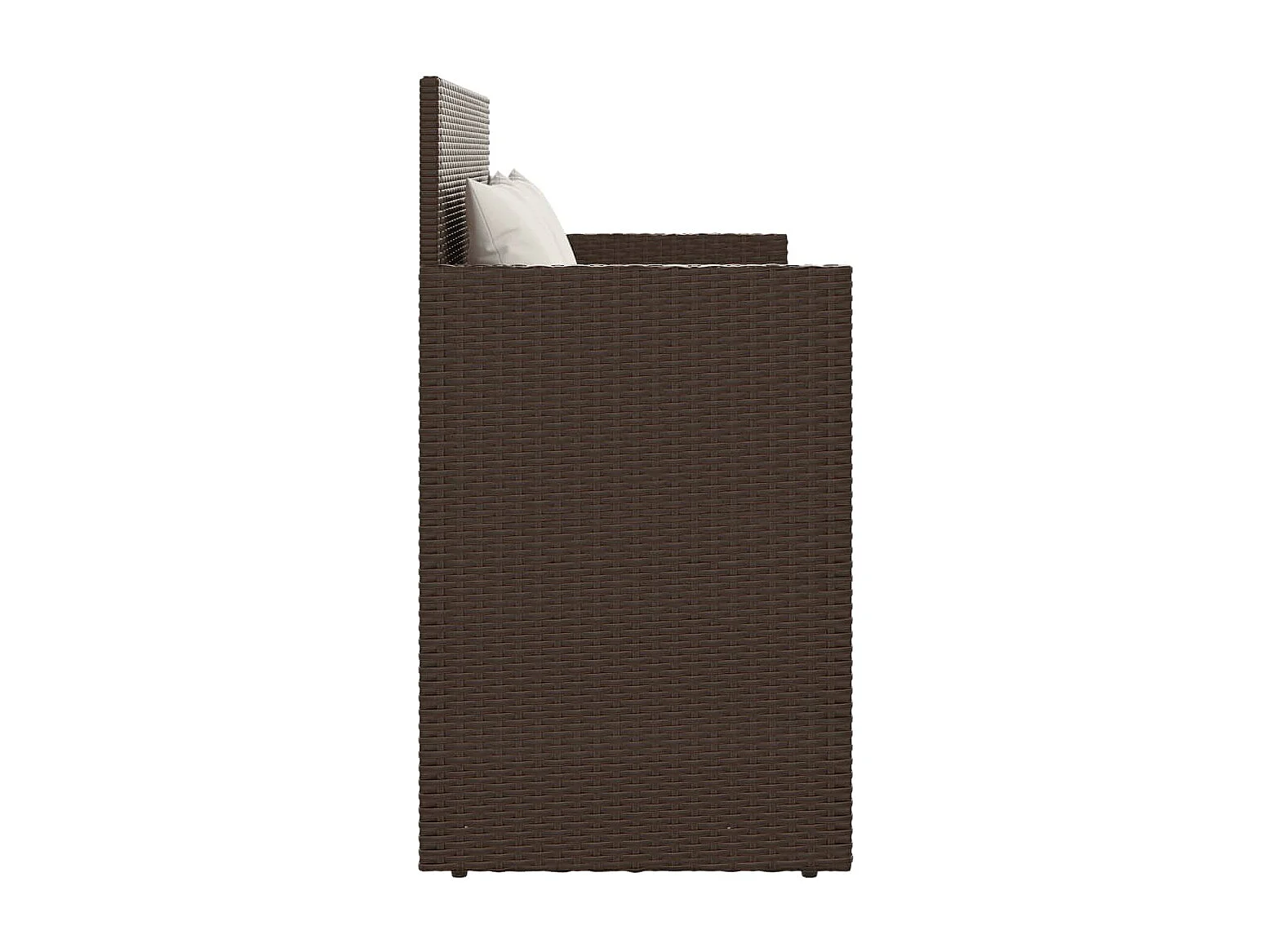 Panca da giardino con cuscini in resina intrecciata marrone