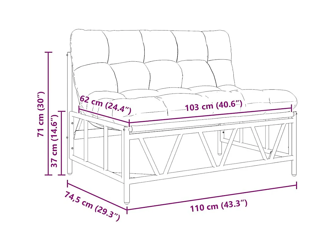 Panca da giardino con cuscino 110x80x71 cm in acciaio