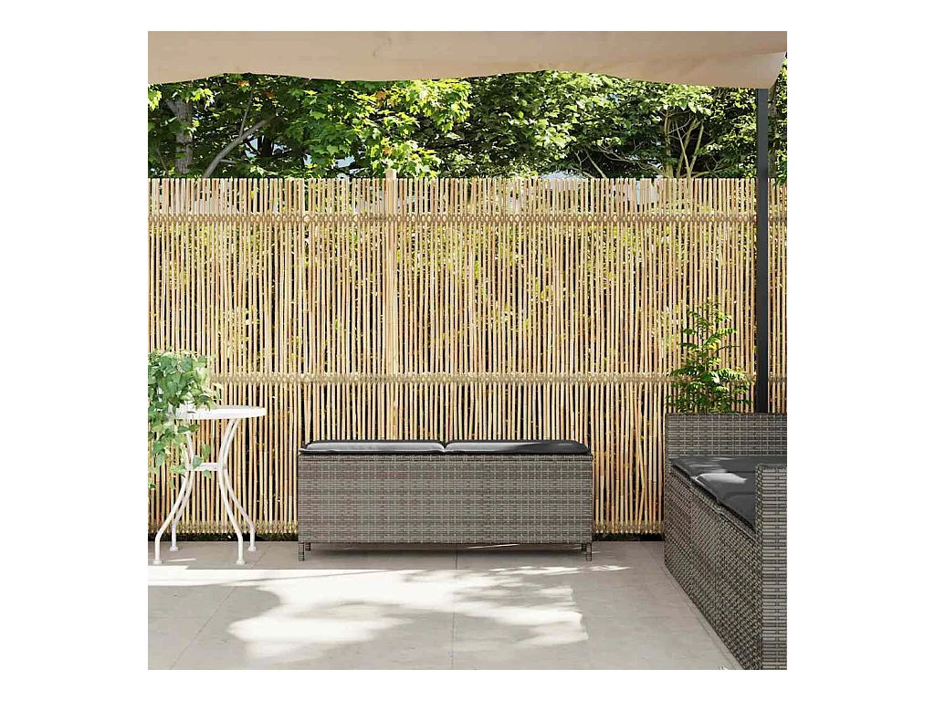 Panca contenitore da esterno con cuscino grigio 100 cm in resina intrecciata