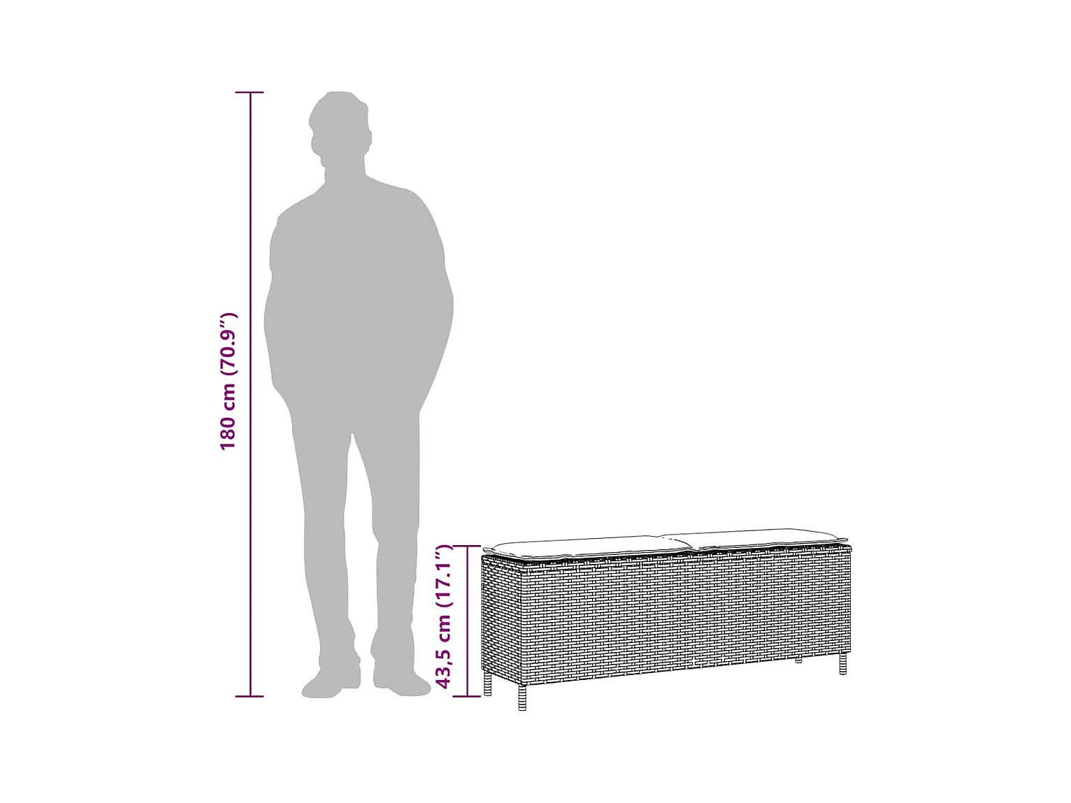 Panca da giardino con cuscino grigio 110x30x40,5 cm in resina intrecciata
