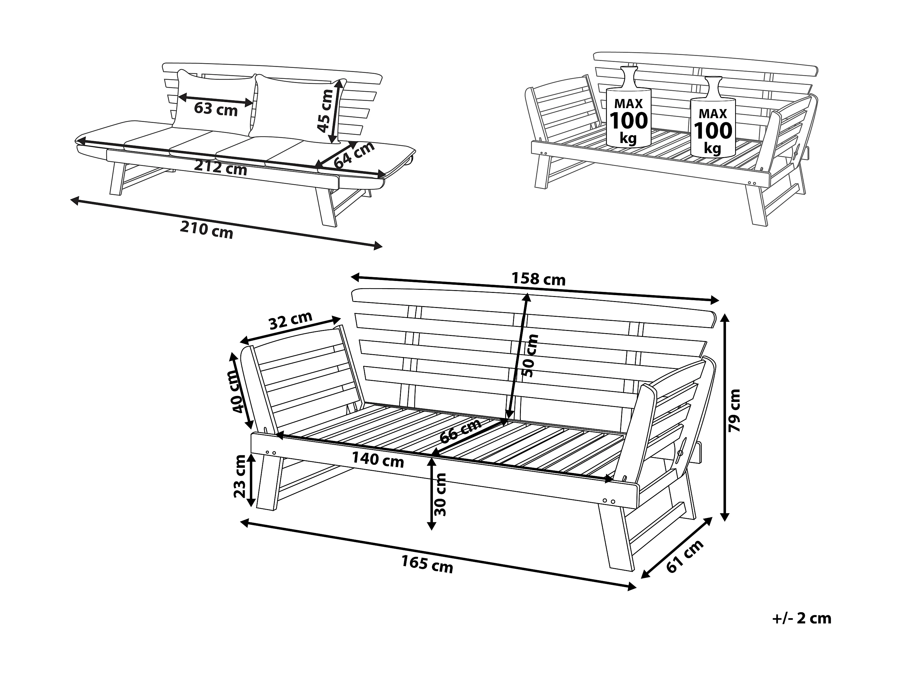 Panca da giardino con cuscino PORTICI 210 cm Legno d'eucalipto Marrone scuro/ Bianco
