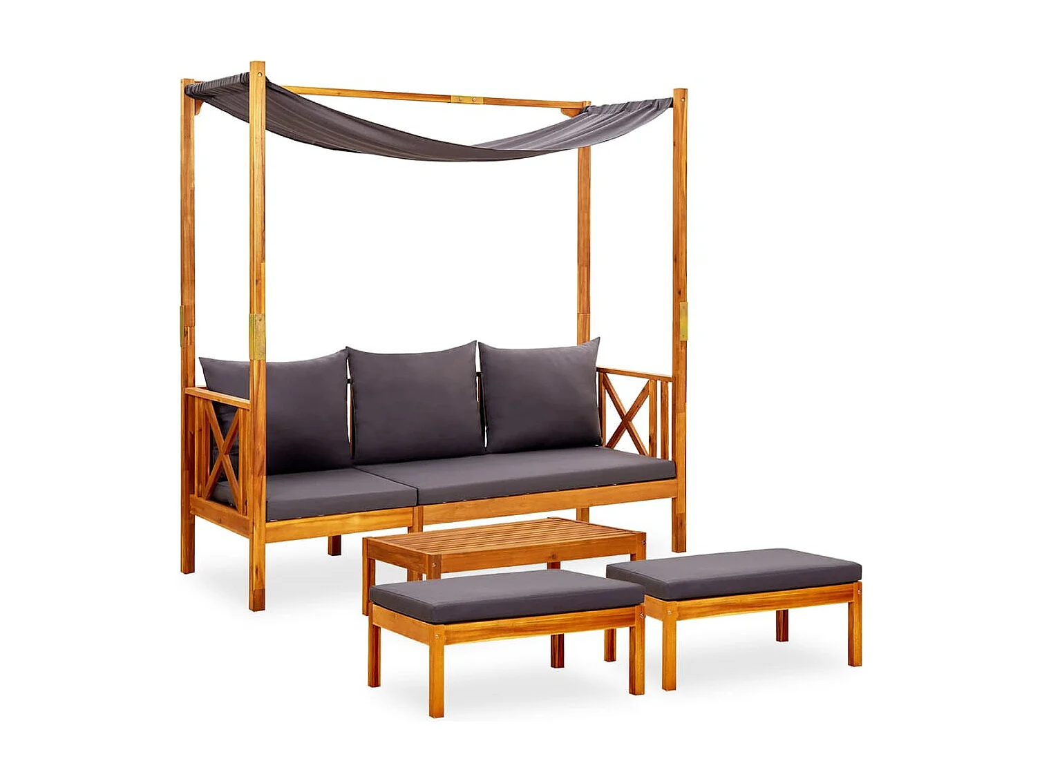 Panca da giardino con tavolo e poggiapiedi Legno massello di acacia