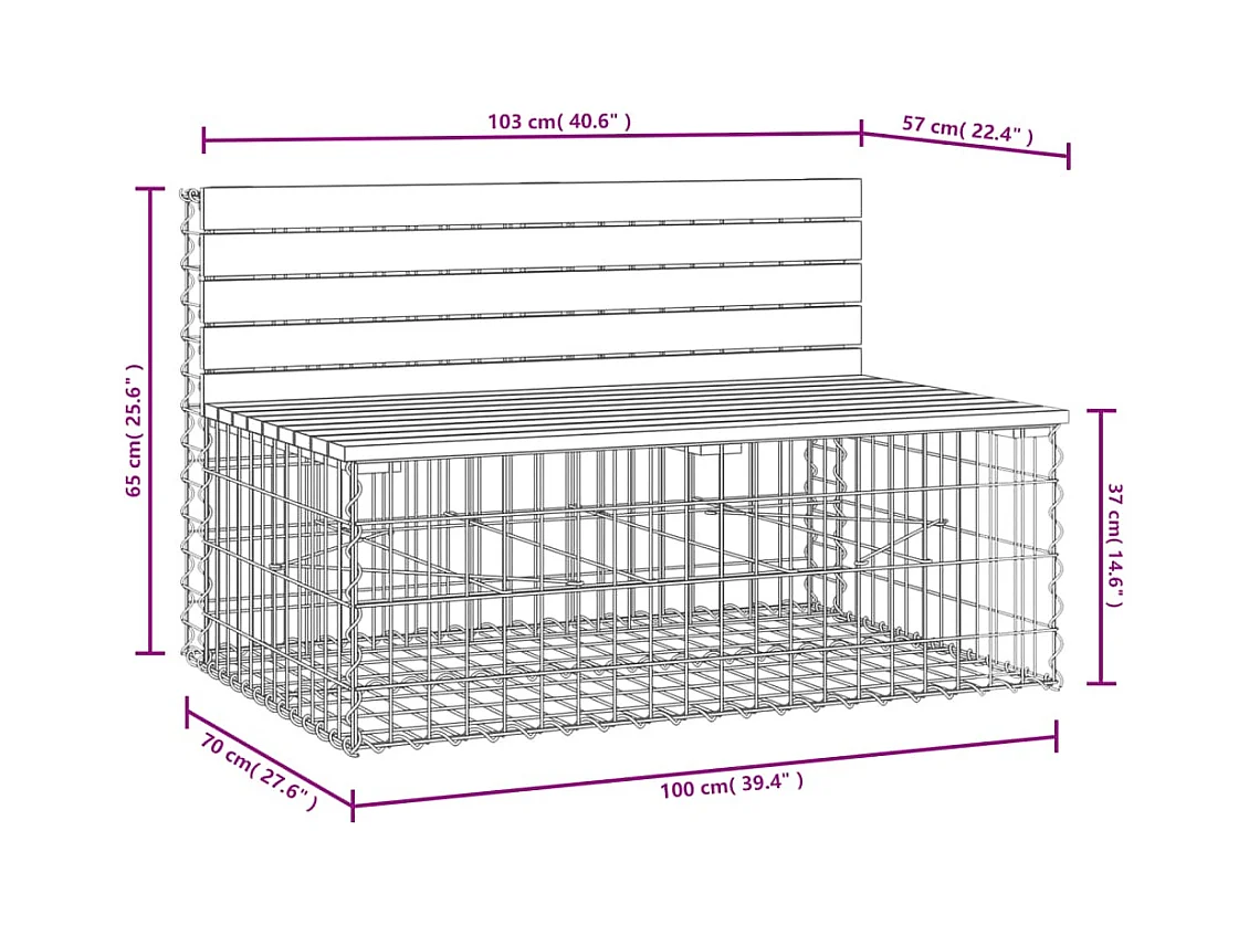 Panca da giardino gabbione di design 103x70x65 cm in legno di pino massiccio