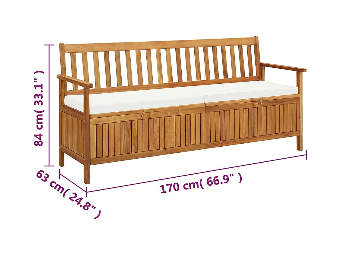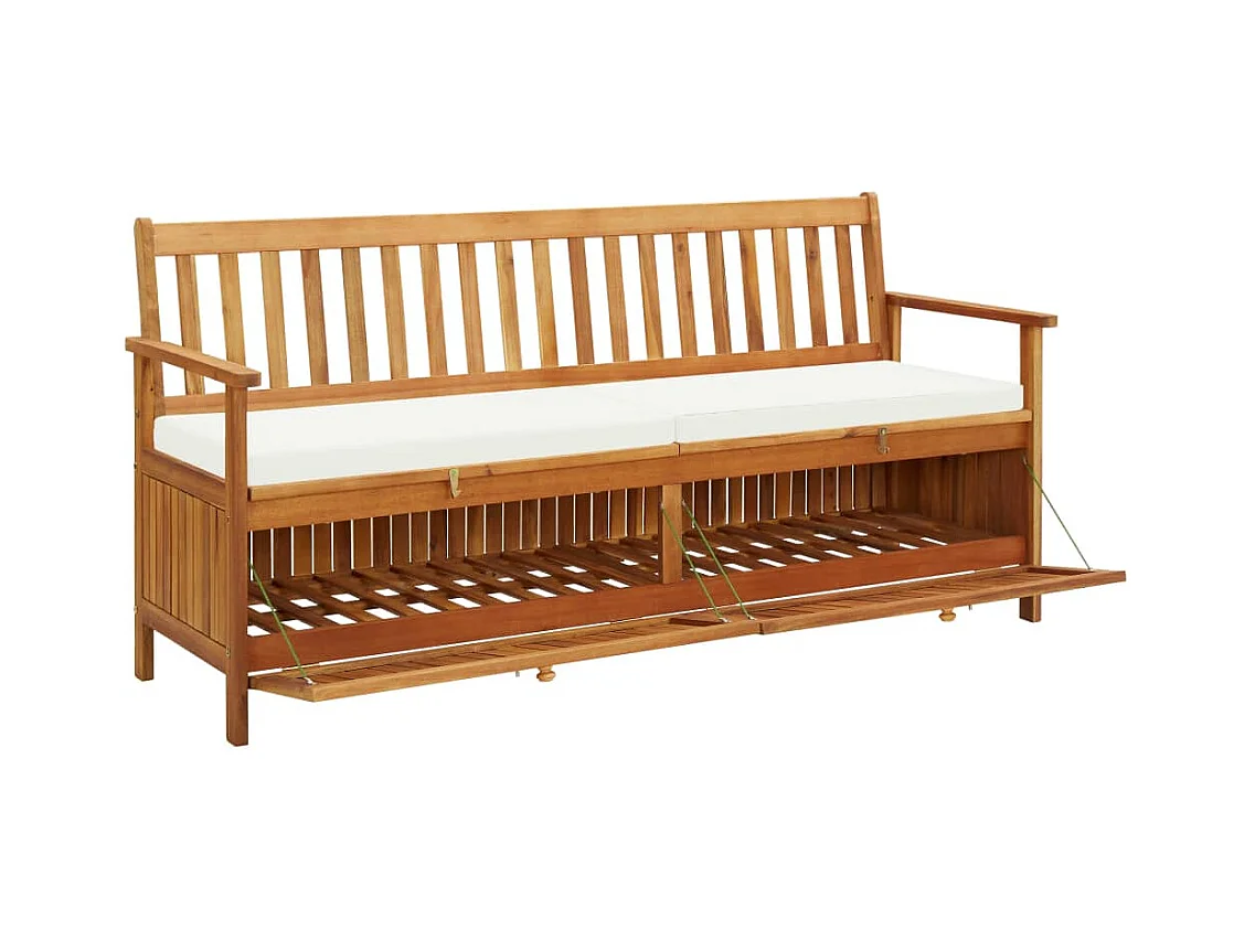 Panca da giardino mobili da esterno terrazza portaoggetti con cuscino 170 cm in legno massello di acacia 02_0011801