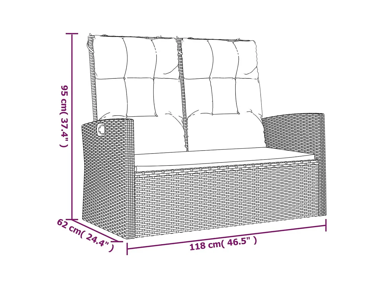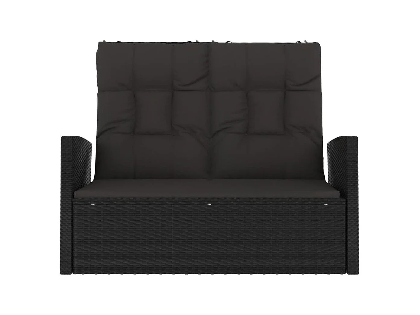 Panca da giardino a 2 posti con cuscini intrecciati in resina nera