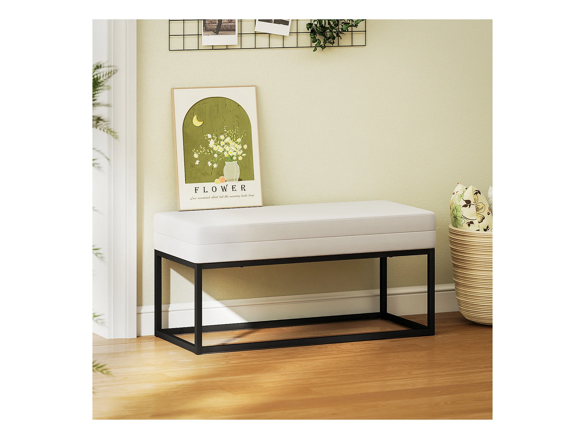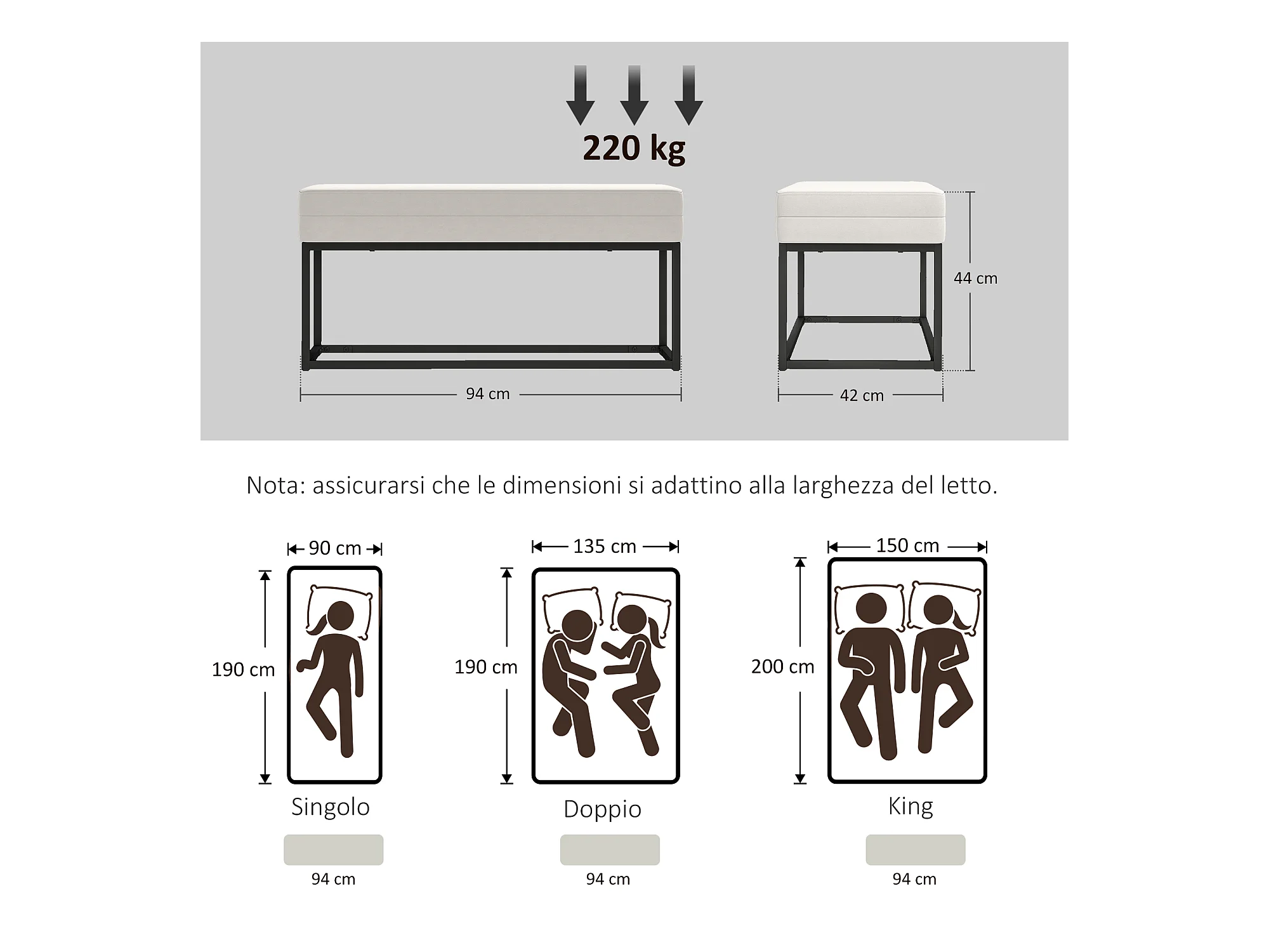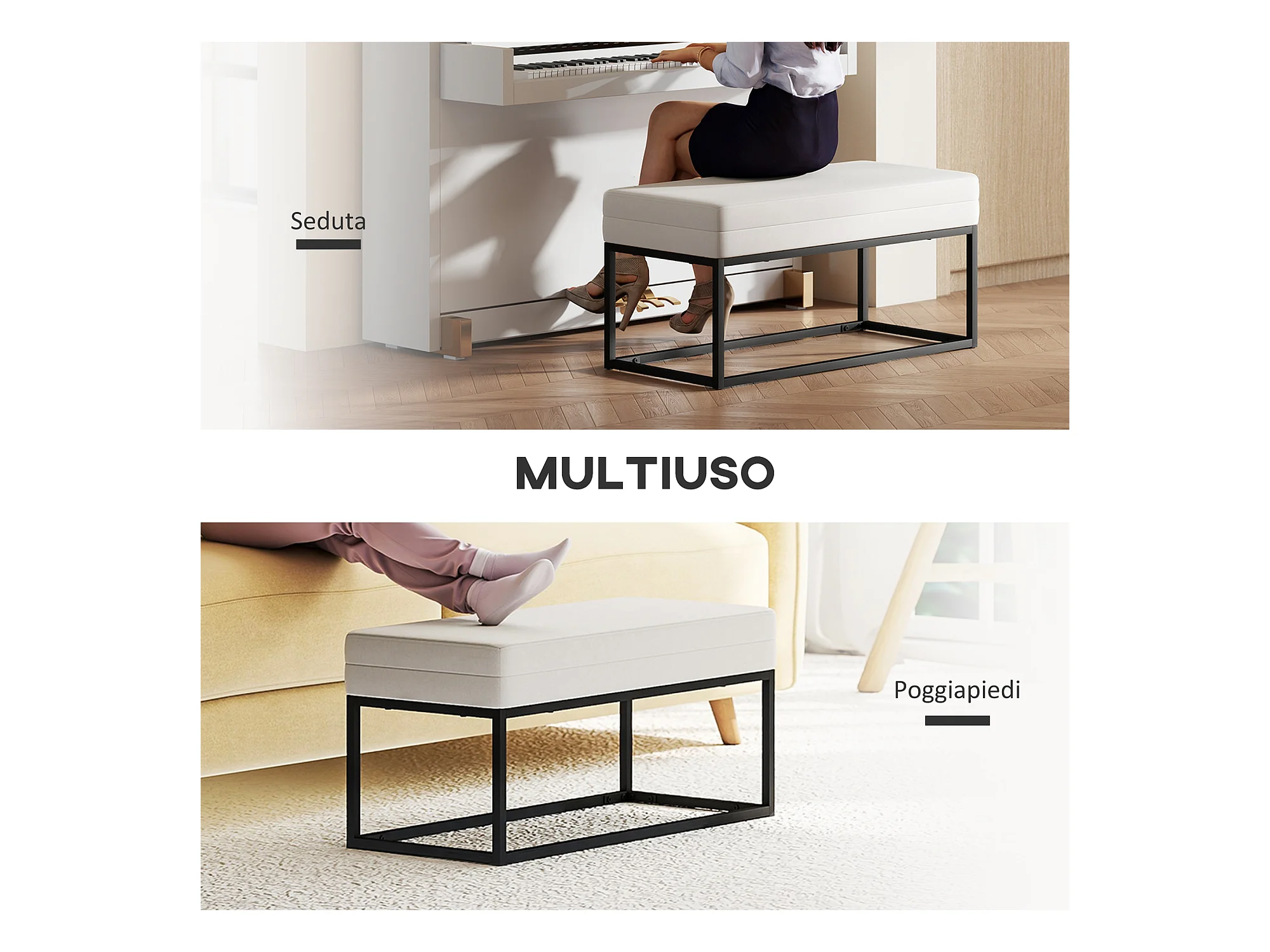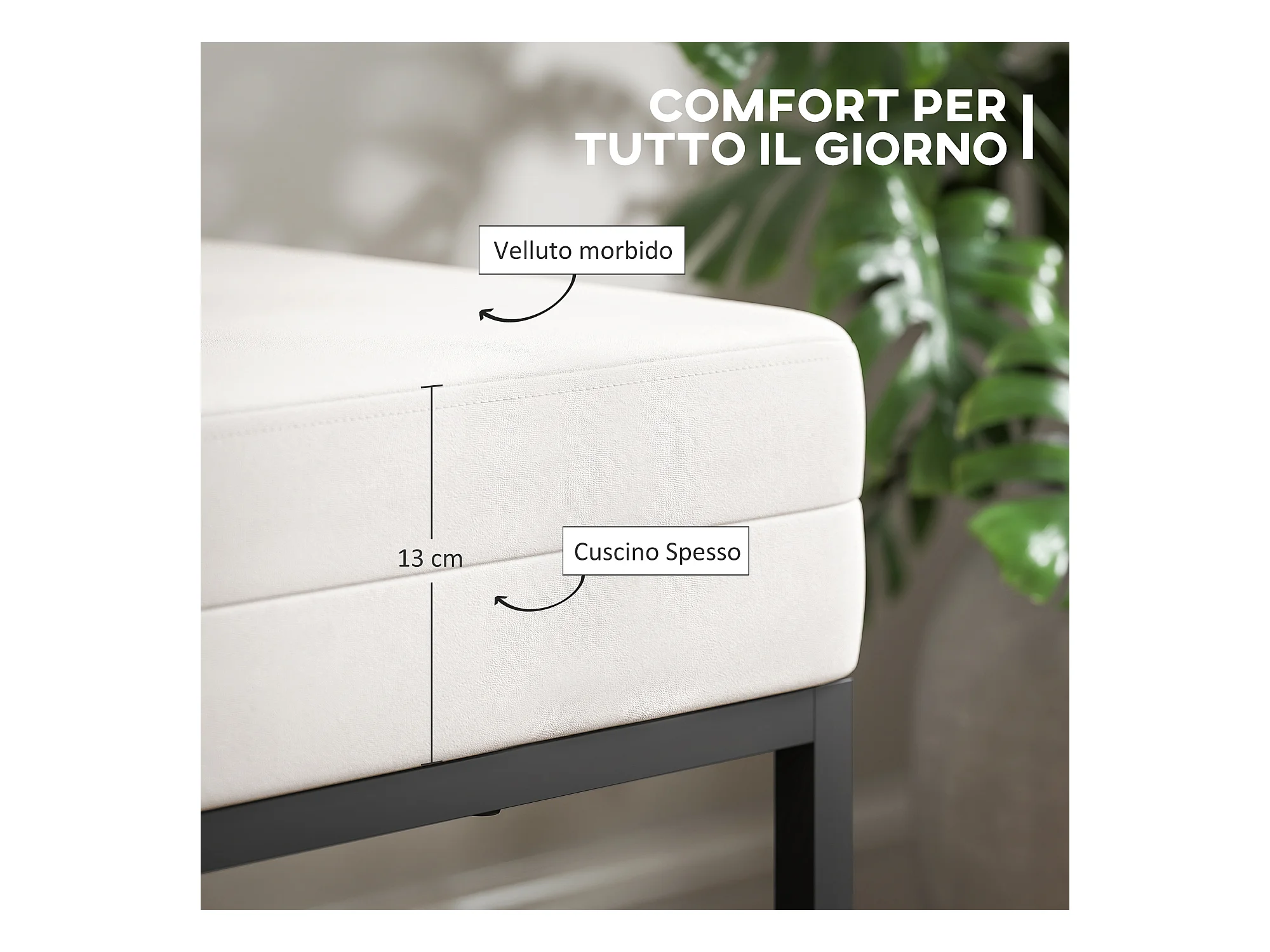 Panca da Ingresso moderno e vellutato con piedini regolabili crema
