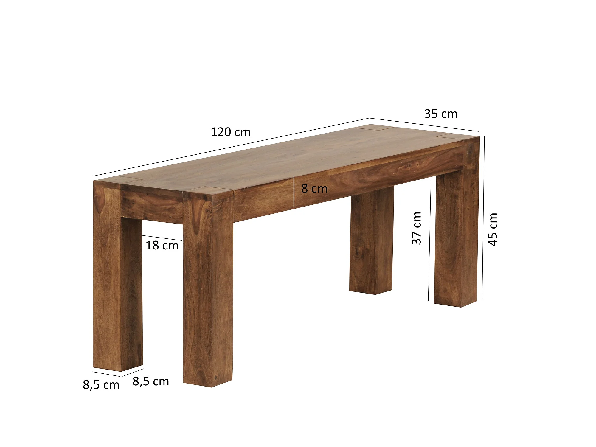 Panca massiccia HARLEM Sheesham legno panca da pranzo senza schienale