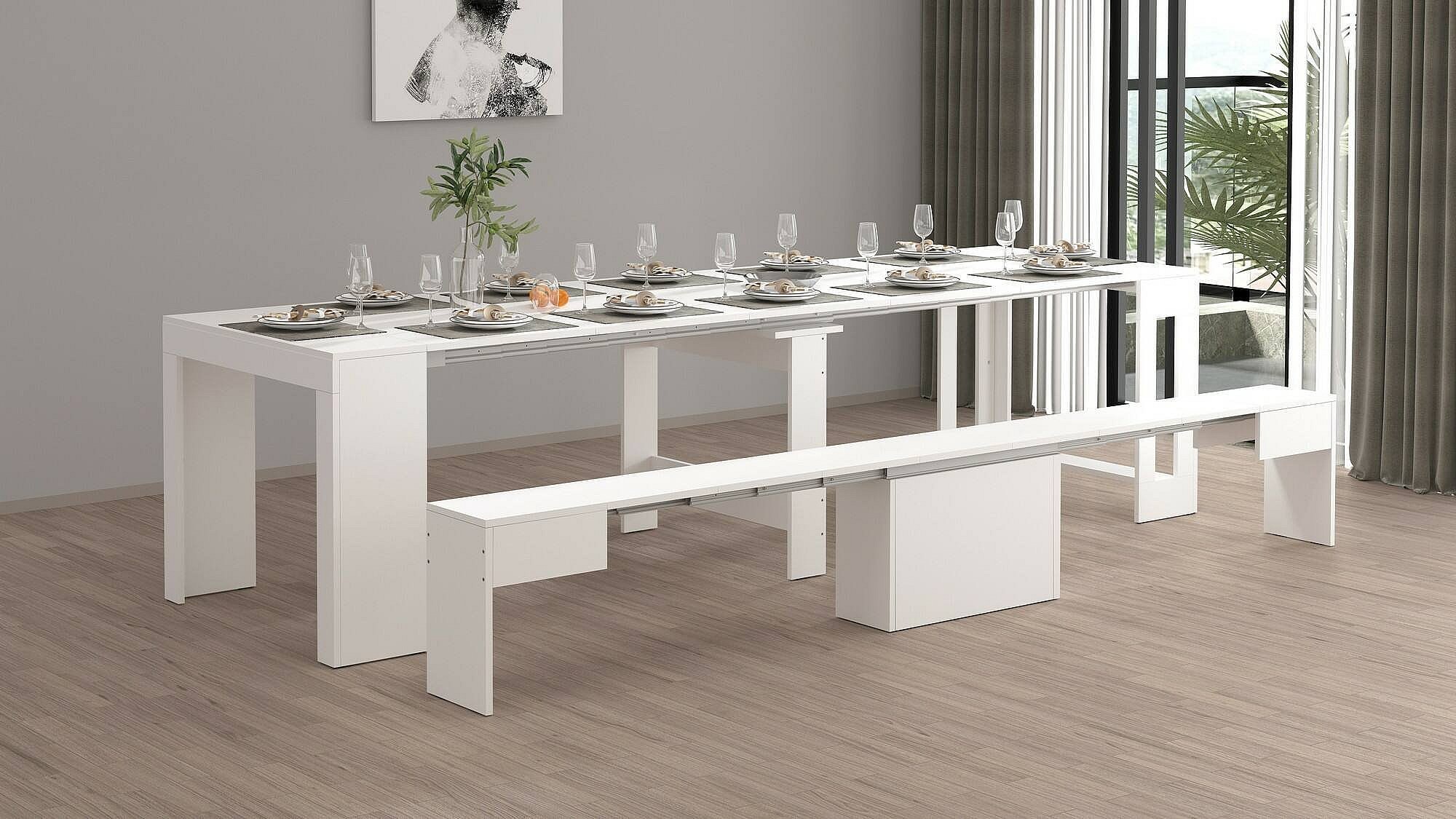 Dmora - Panca Yutu, 290x25h45 cm, Bianco lucido