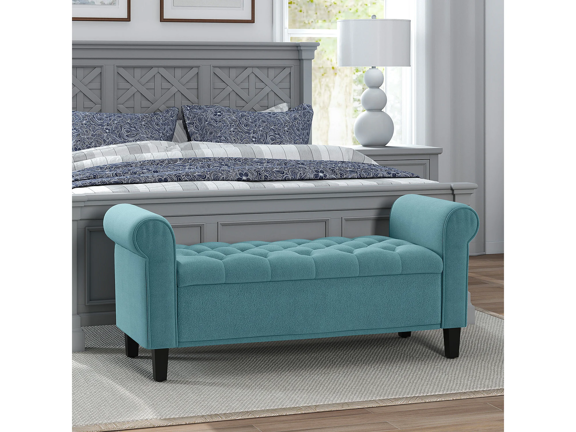 Panca fondo letto con contenitore e braccioli arrotolati verde