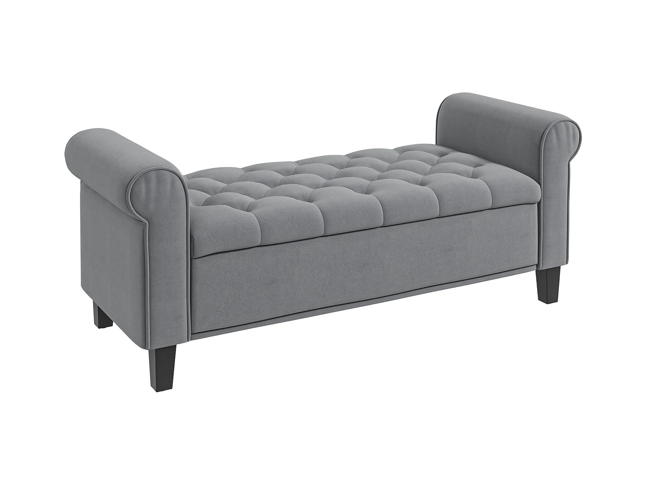 Panca fondo letto con spazio portaoggetti braccioli arrotolati