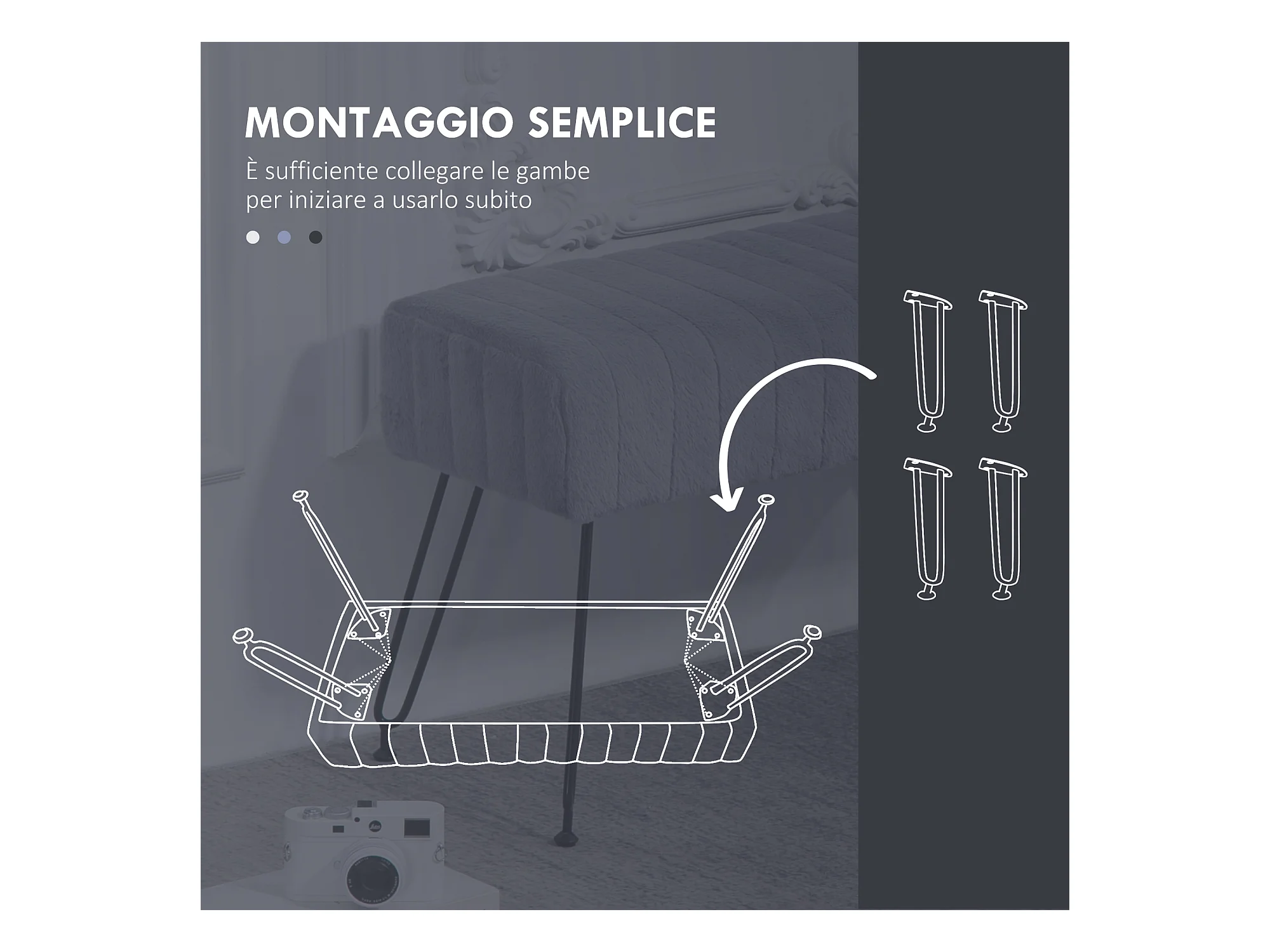 Panca fondo letto imbottita in peluche legno e metallo grigia nera